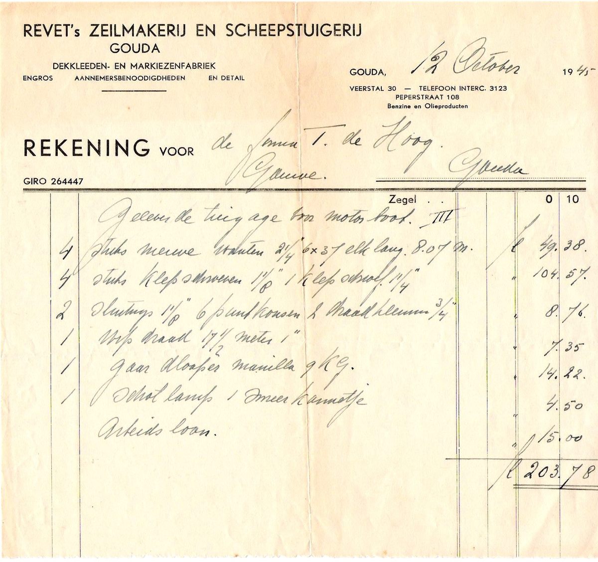 voor de somma F. 203,78, in orde gebracht.