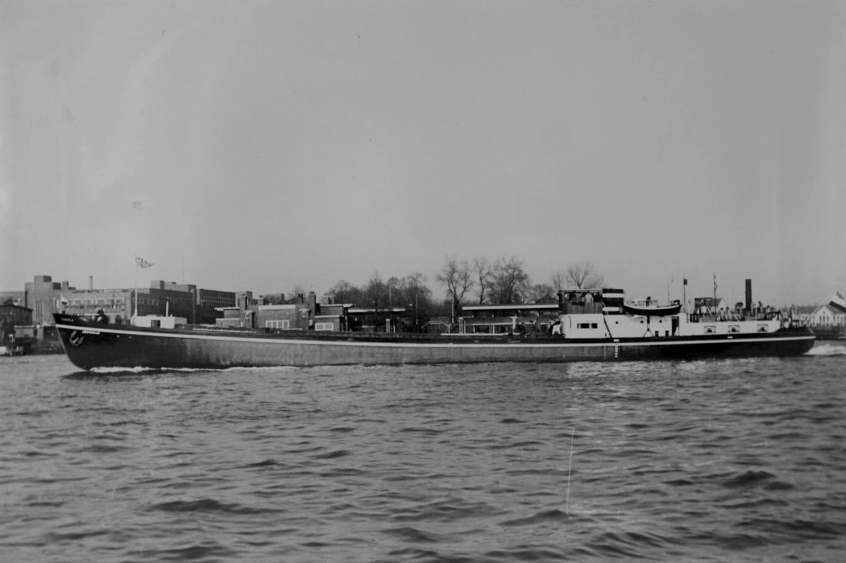 De 2 Bolnesmotoren van 200 pk bij 400 tpm geven het schip een snelheid van