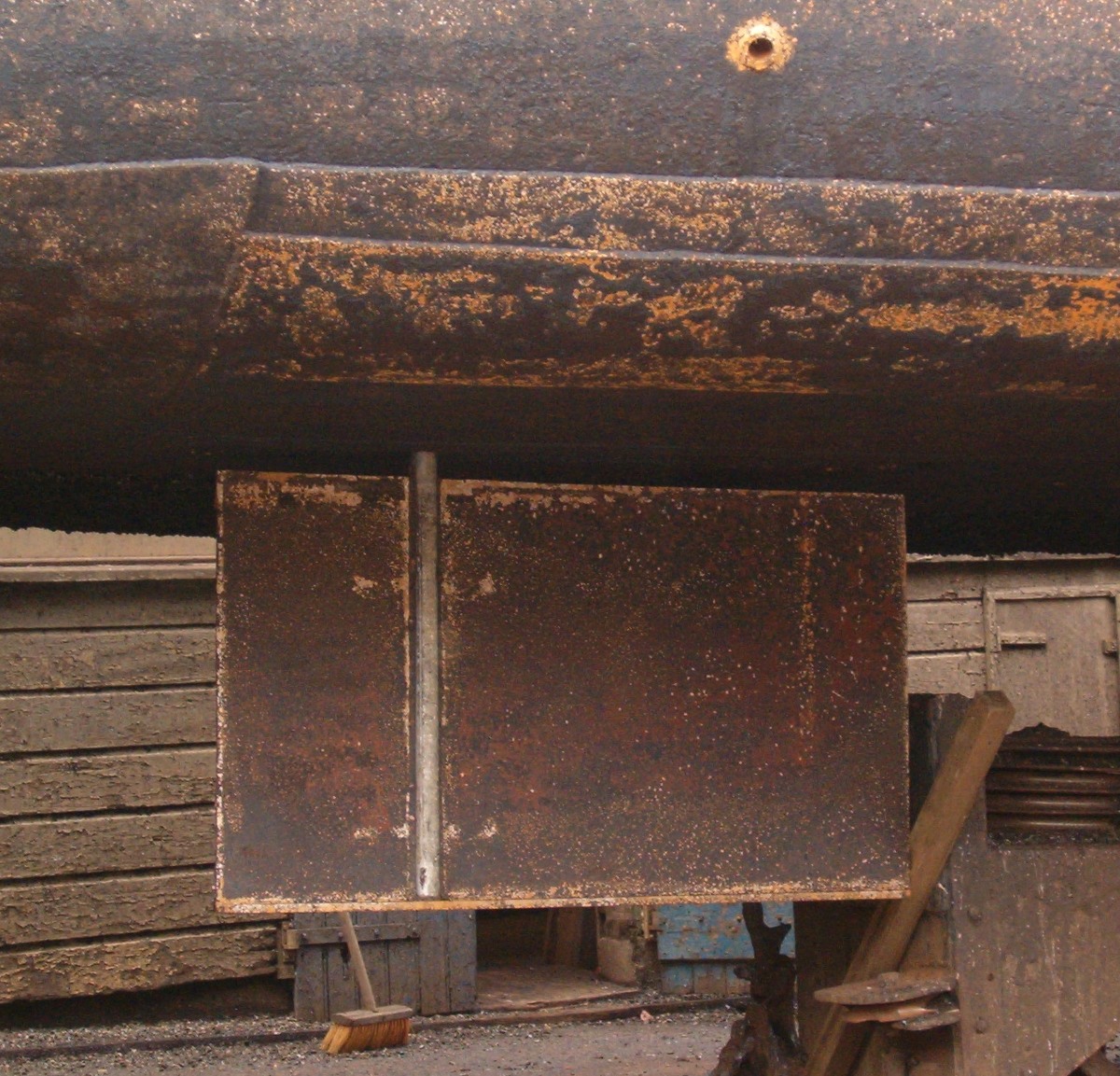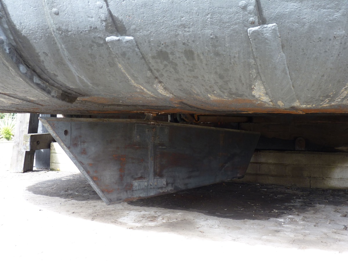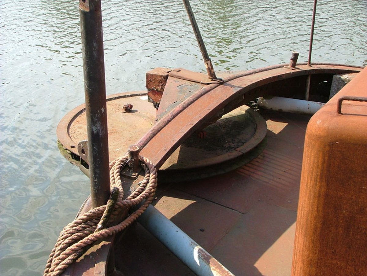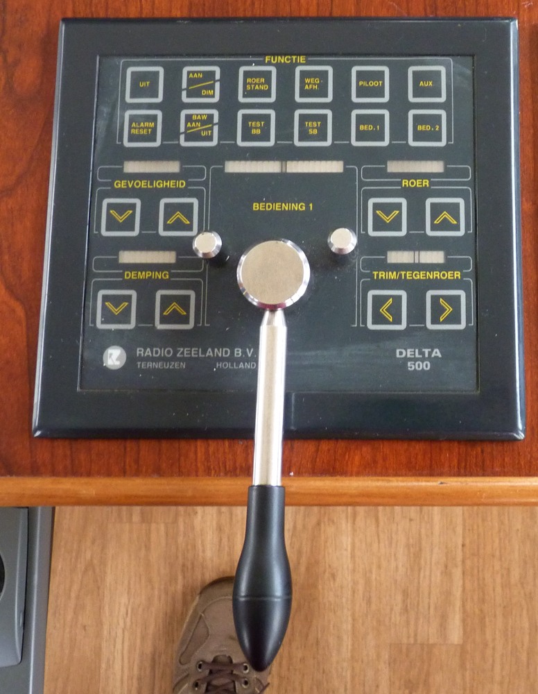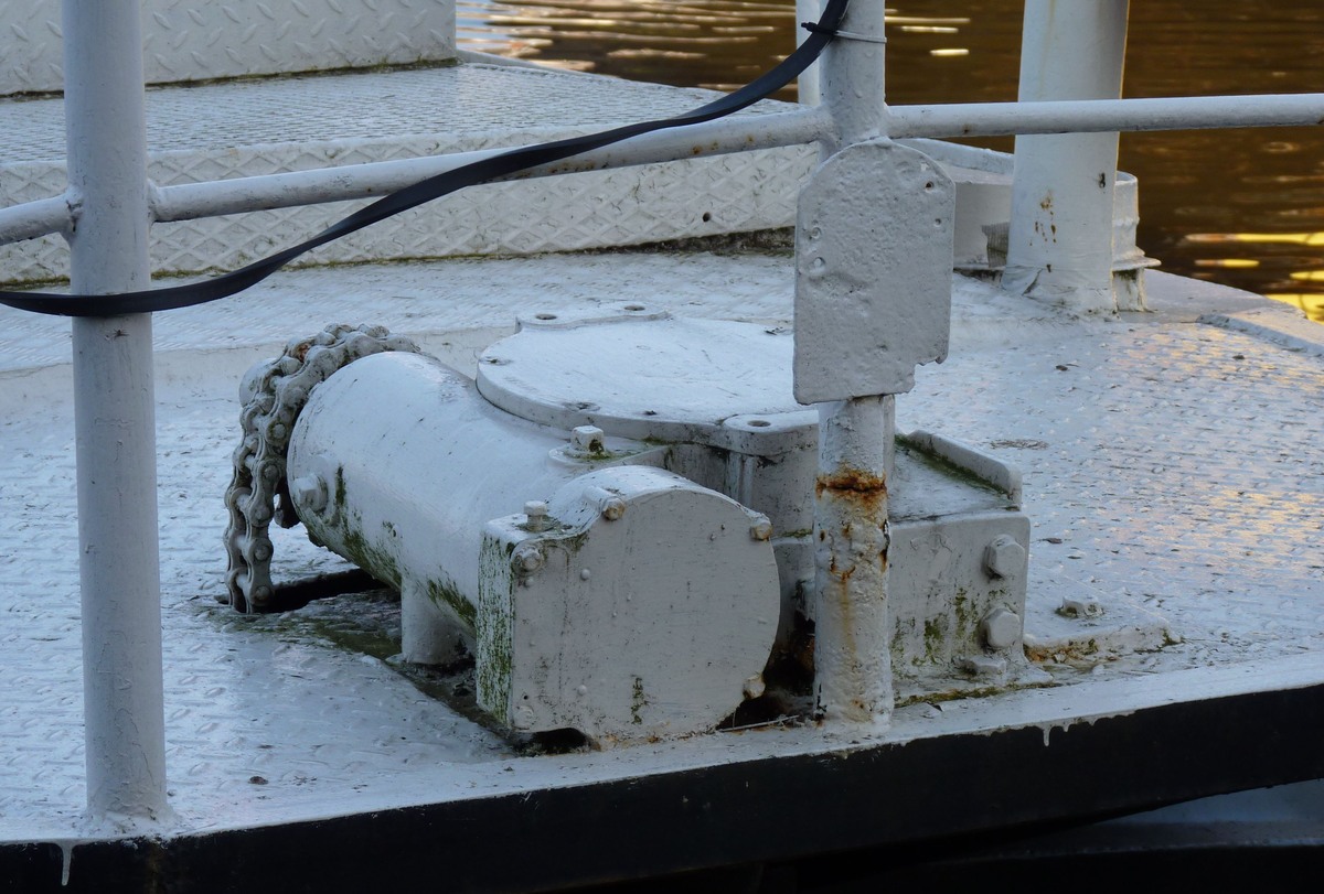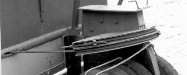 en daarmee het hele stuurhuis omhoog of naar beneden draaien. Daarna wordt de stuurhut op de gewenste hoogte vastgezet, de spie terug geplaatst en de tandwielen weer vrijgegeven. Het