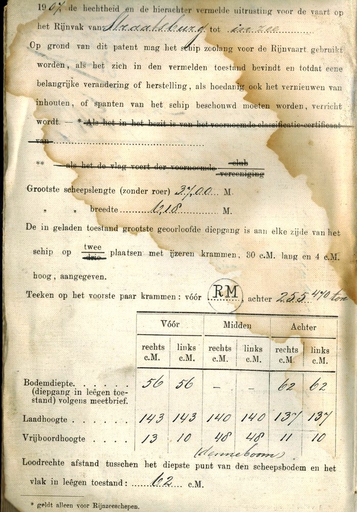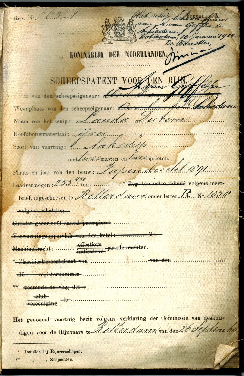 Scheepspatent voor het schip 'Lauda Ducem'