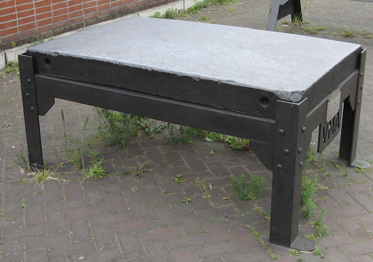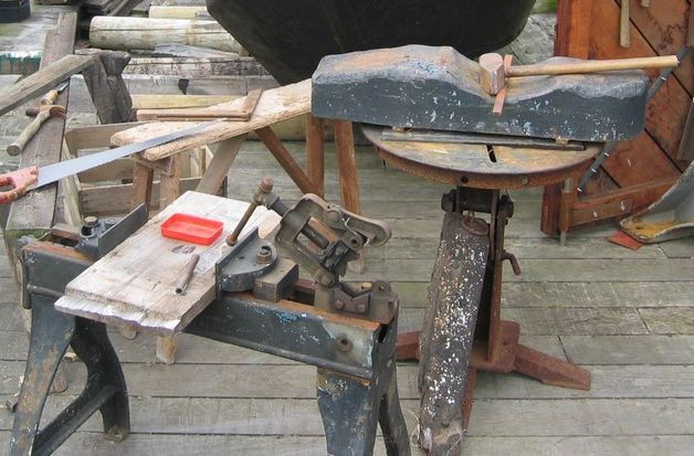 Stoffige en verlaten staat hier een buigbank - zetbank waarmee men platen een vouw of een krappe ronding kon geven.