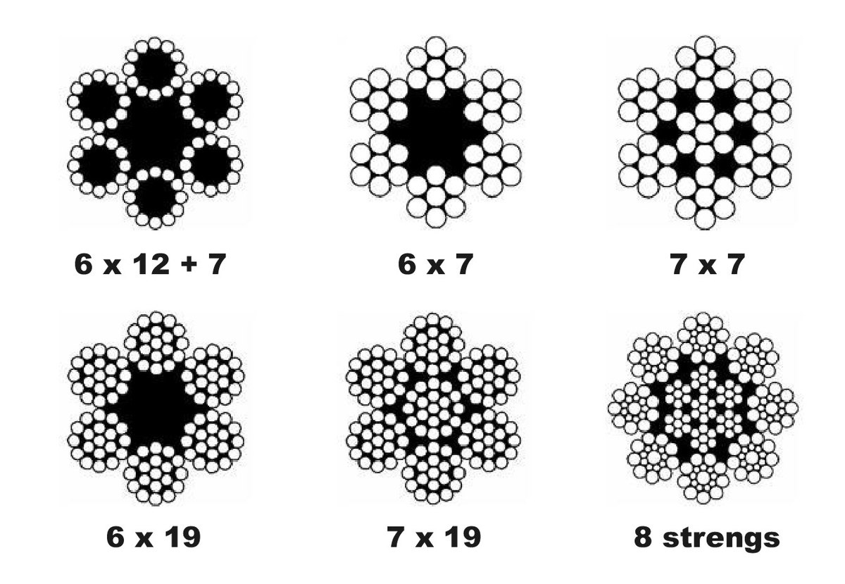 op diverse manieren tot kabels worden. Weinig dikke draden, bijv. 7x7,