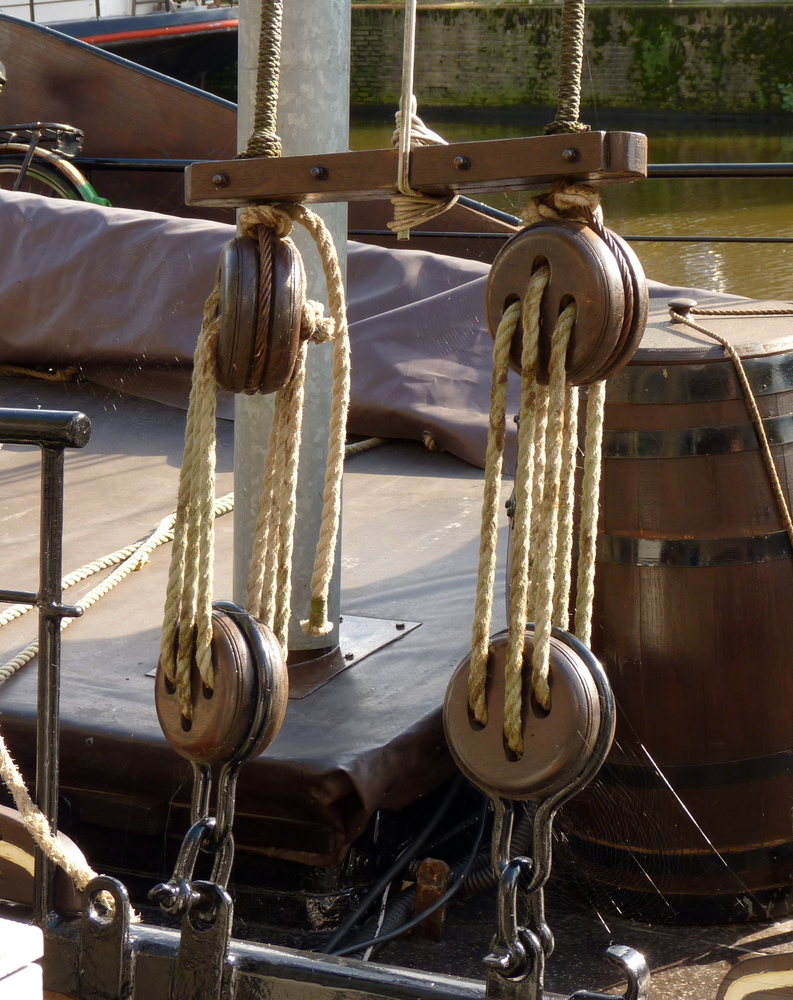 Jufferblokken; eigenlijk zijn het takels, maar ze zijn, net als de zijstagnaaiing, een nagenoeg onbeweeglijk onderdeel van de zijstagen. Wat is het dus: staand of lopend want?
