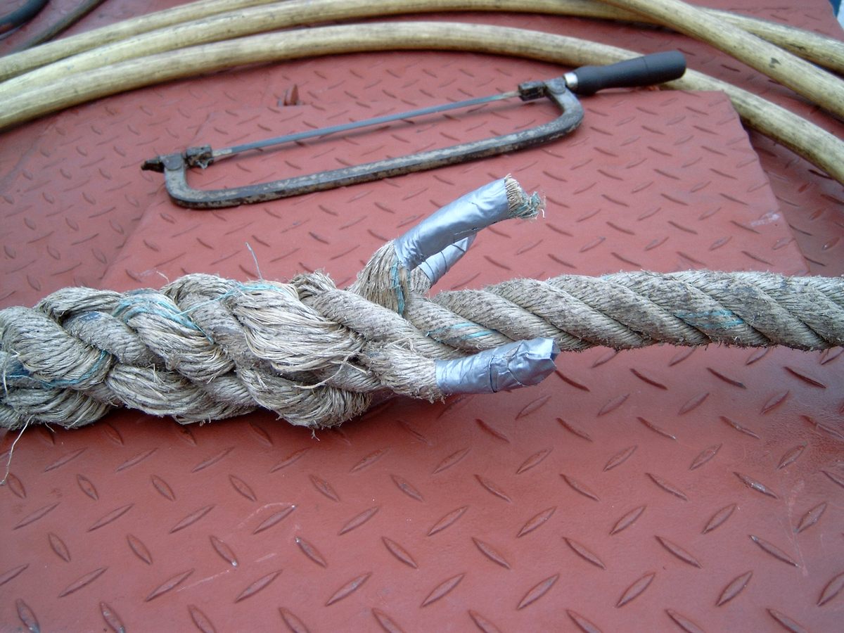 splitsen van gebruikt touwwerk kan heel lastig zijn; de tampen zijn