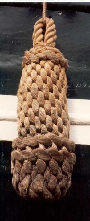 Een touwring of grommer. Deze is gemaakt door een kardeel driemaal om zichzelf heen te slaan en de uitgedunde einden weg te splitsen. Grommers werden ondermeer gebruikt voor de zogenaamde stropblokken.