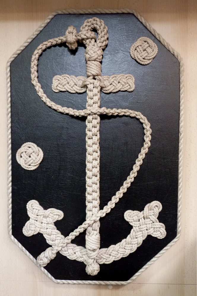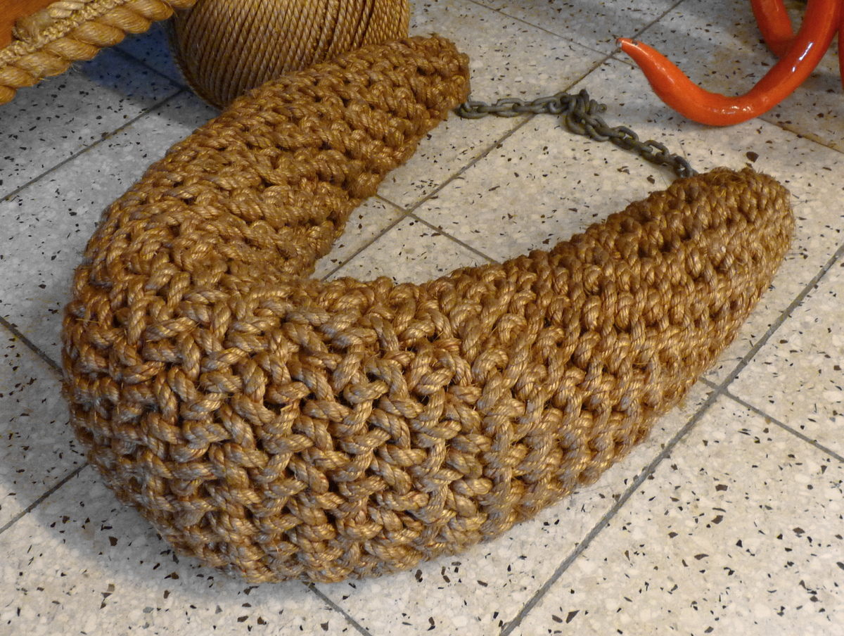 Het eenvoudigw belletouw, aan boord van de Damco 9, bestaat grotendeels uit een herhaling van kruisknopen.