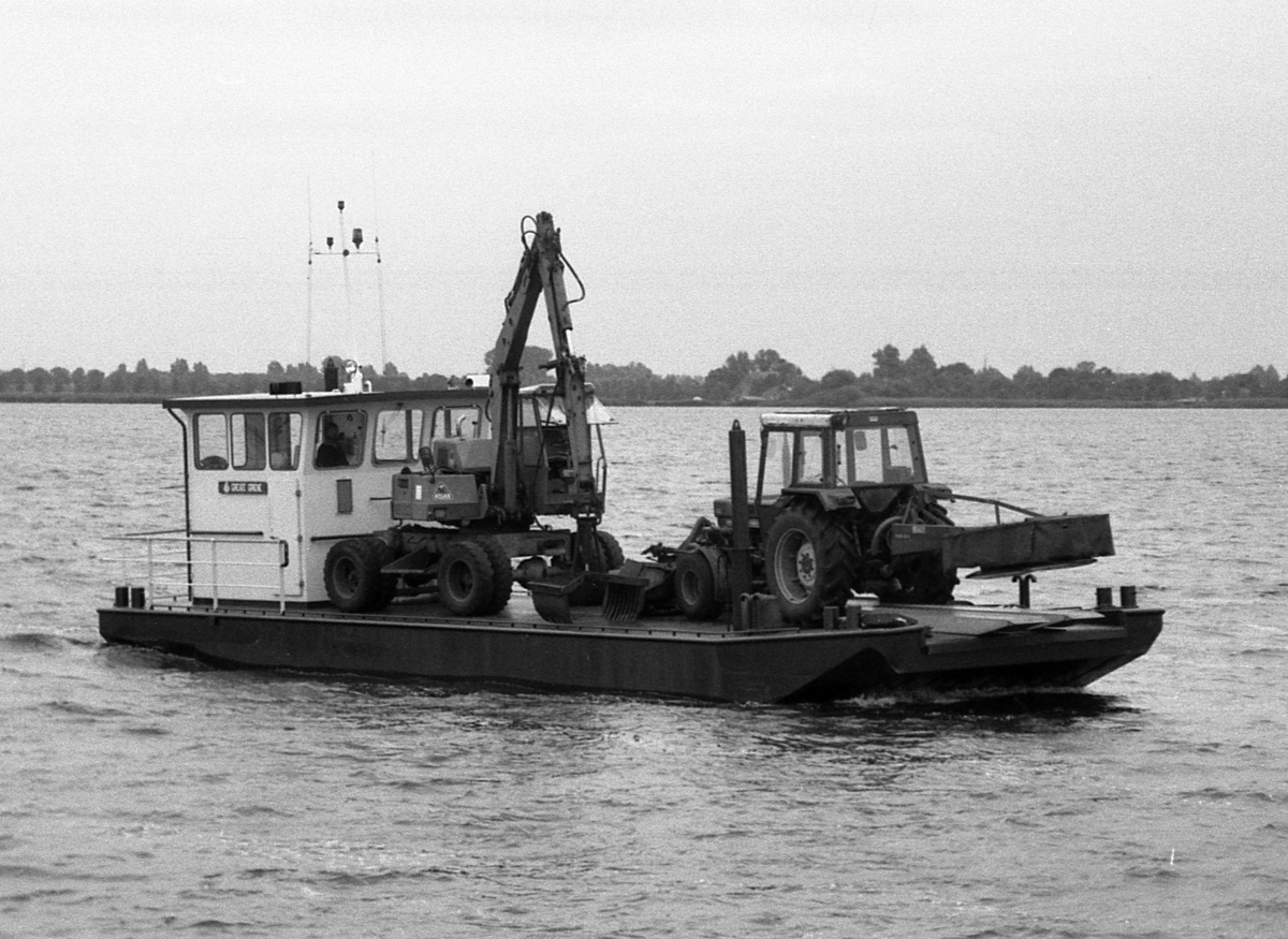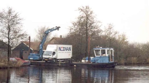 Het transport van materieel voor StaatsBosBeheer. Pontonschip 'Greate Griene'.