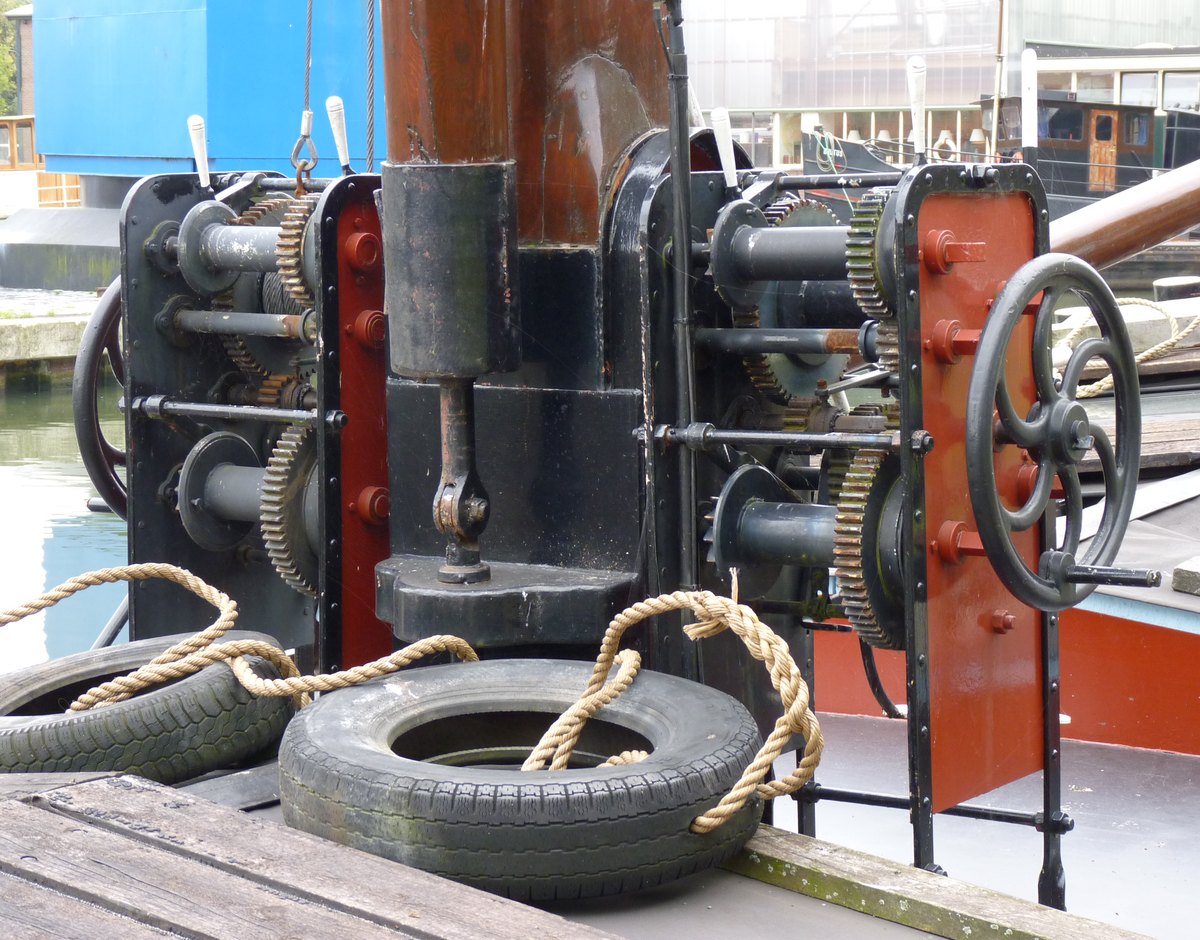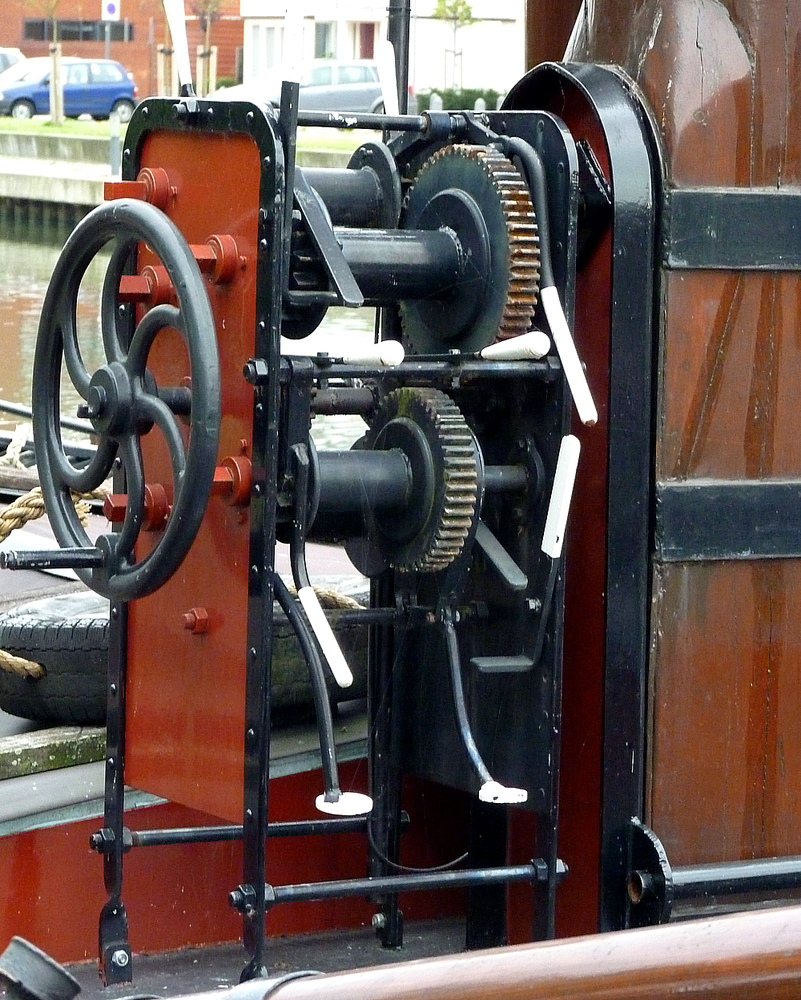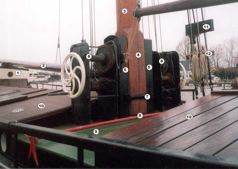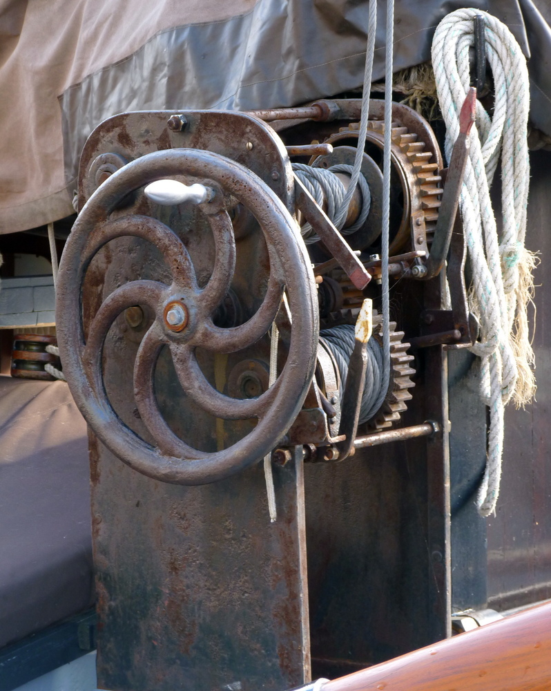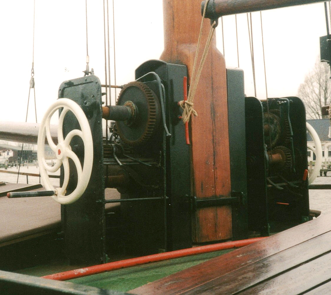 De klipper Lumey, slechts 82 ton groot heeft twee van dergelijke lieren naast de mast. Elk lier heeft vier rollen......