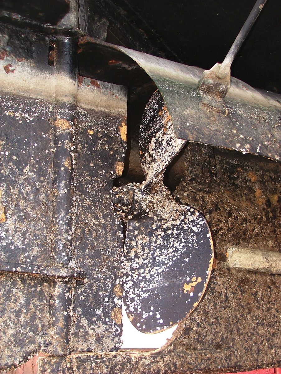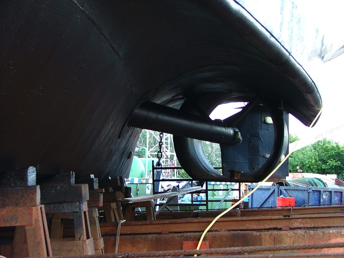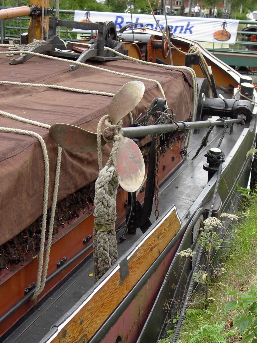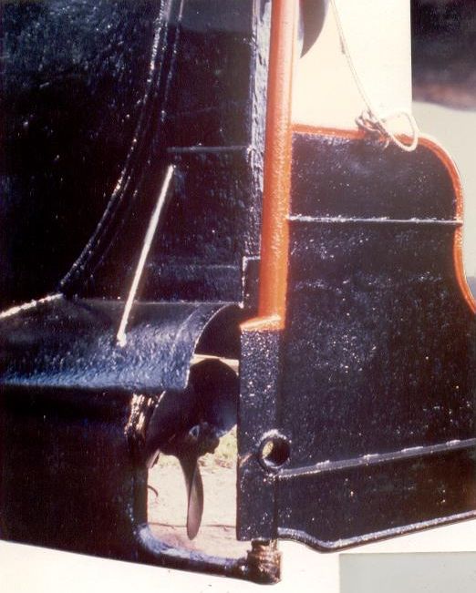 Een beetje vreemde roerpropeller, bijna een buitenboordmotor.