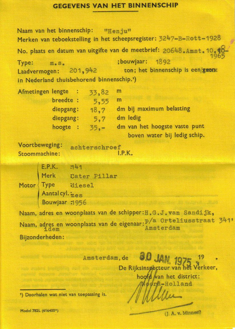(groter formaat) Blz. 2. Betreffende mvs Henju (eni 02020648).