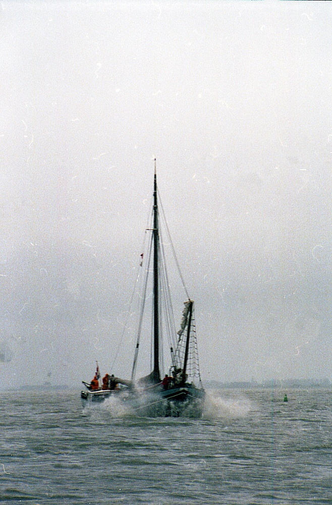 De eindeloze vlakte van het IJsselmeer, ergens tussen Workum en Medemblik, op een