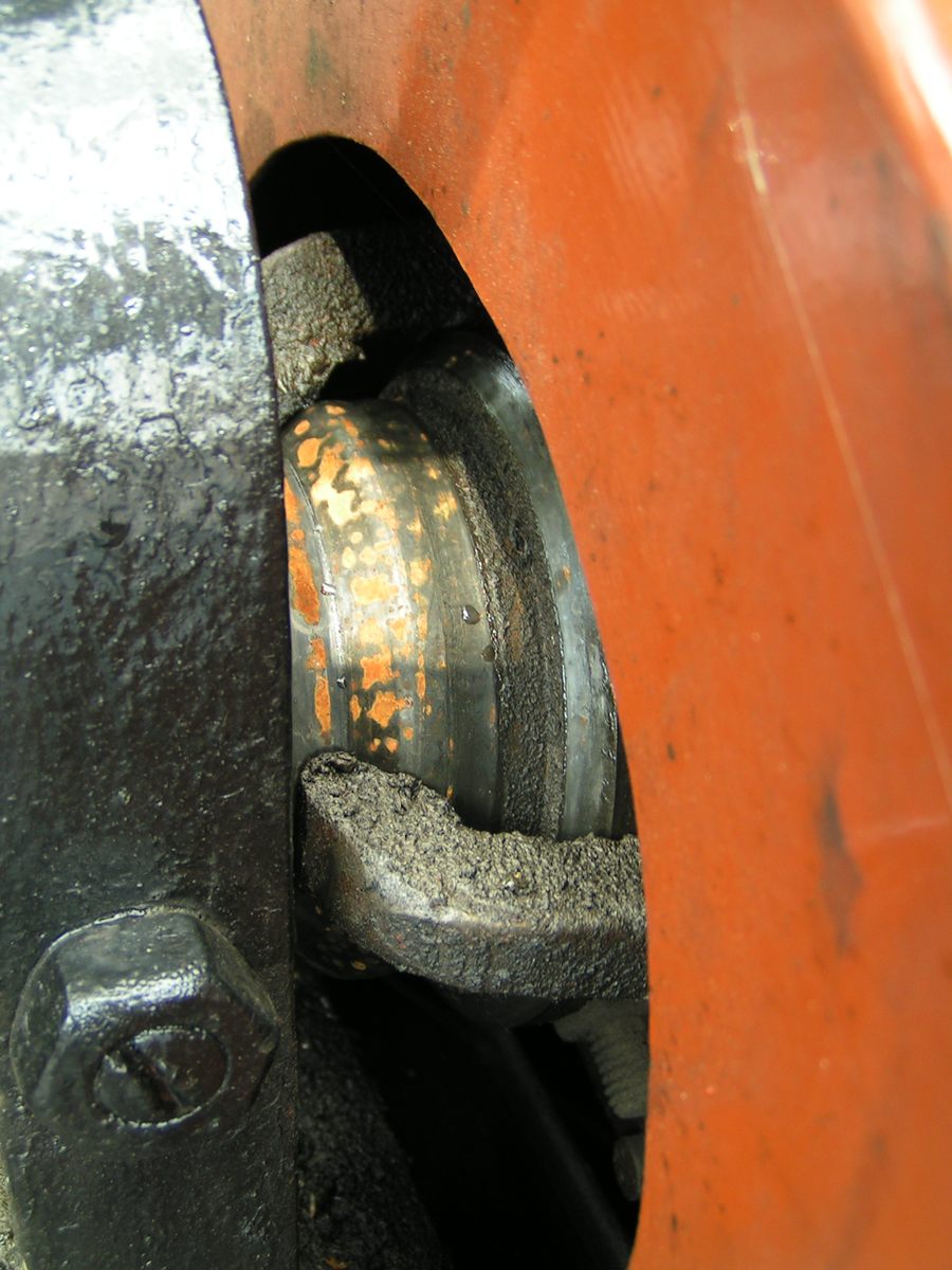 Met het gele wiel wordt de zaak vastgeklemd, zodat het mechanisme in
