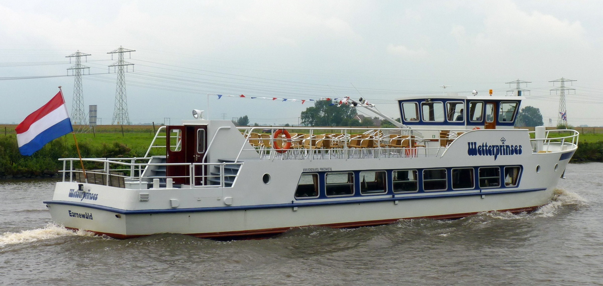 achterste gedeelte van het dak kan opengeschoven worden, zodat men bij mooi weer van de buitenlucht kan genieten. Het schip vervoert maximaal 250 passagiers, meet 35,07 x 5,82 x 1,03 meter en werd in 1992 bij Alland Syperda te Osingahuisen gebouwd. [
