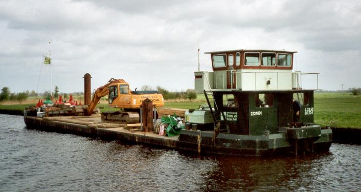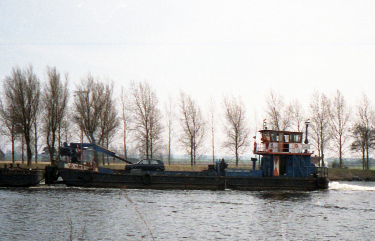 'Aafje Jacoba' geladen met een kraanarm. Het schip werd, bij Schimag te Mannheim, als gewoon motorvracht in 1923 voor de Schweizerische Reederei AG in Basel gebouwd.