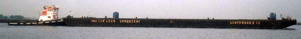 Ponton 'Lastdrager 12' en sleepboot 'IJsland' op de kruiswaters bij Sneek.