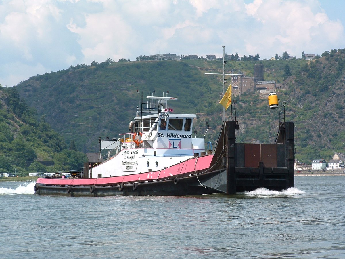 Ondanks de dubbele duwknieën is in de 'St Hildegard' nog steeds goed een sleepboot in te