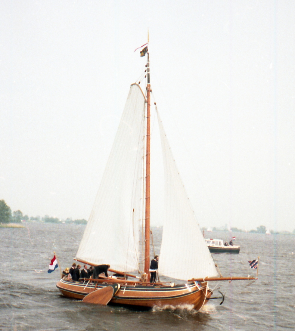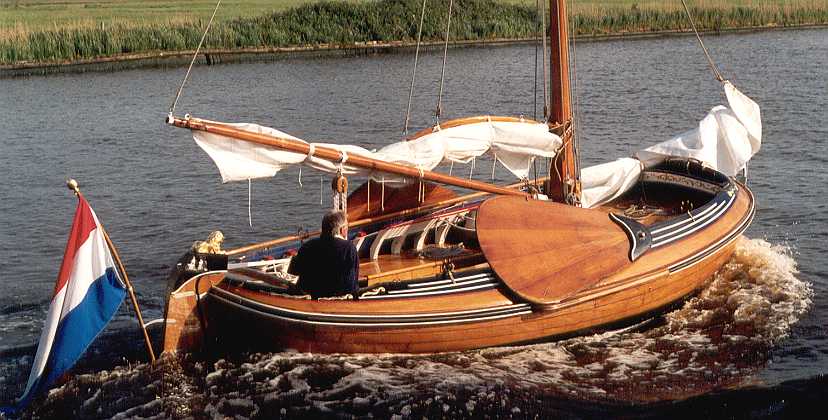 Een klein Fries Jachtje. 6,12 x 2,54m, masthoogte: 11,8m. zeilopp: 25,45 m².