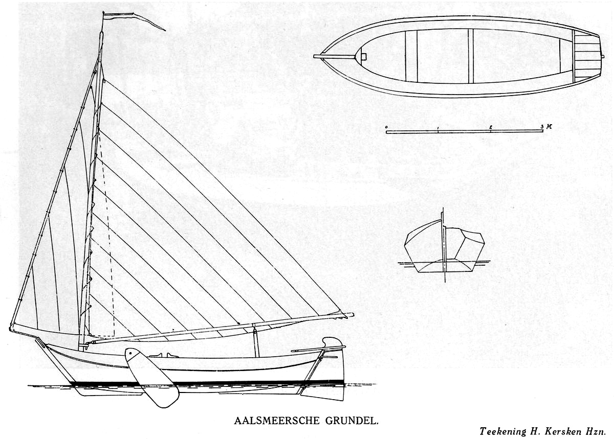 Deze tekening toont, in vergijking met voorgaande tekening van de Grundel, een scheepje met een wat grotere