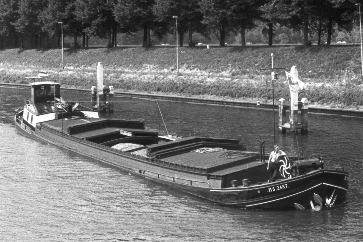 De Dodewaardse hagenaar van schipper Koekoek uit Maasbracht. 269 ton, 36 x 5,82 x 1,93m, 155pk Deutz, 1912. [schepenDB].