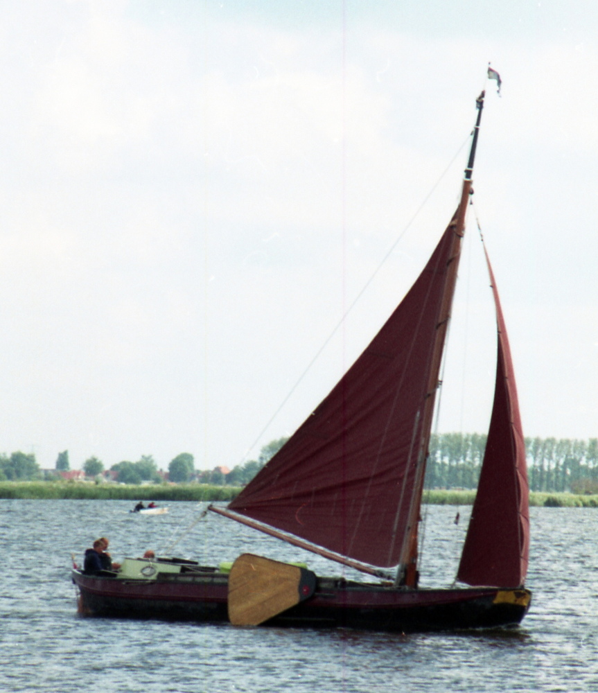Een Kagenaar zeilend. Het model oogt een beetje kort,