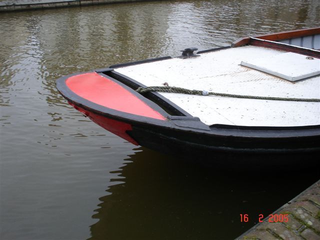Een Kagenaar in de takels, duidelijk zijn de ruime kimmen te zien. Het is dus een rondbodem. Ruime kimmen