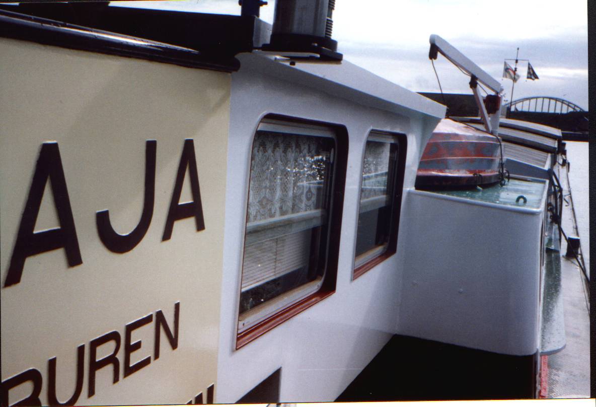 . Duidelijk zichtbaar zijn de naam van het schip en het