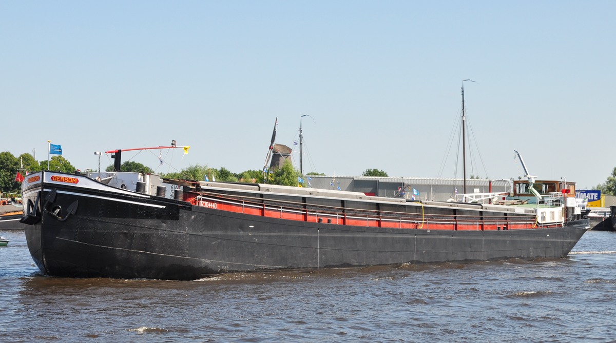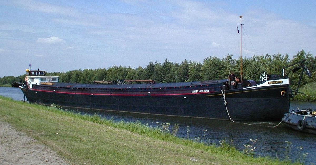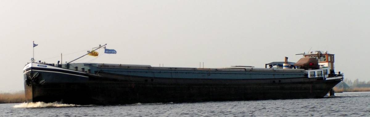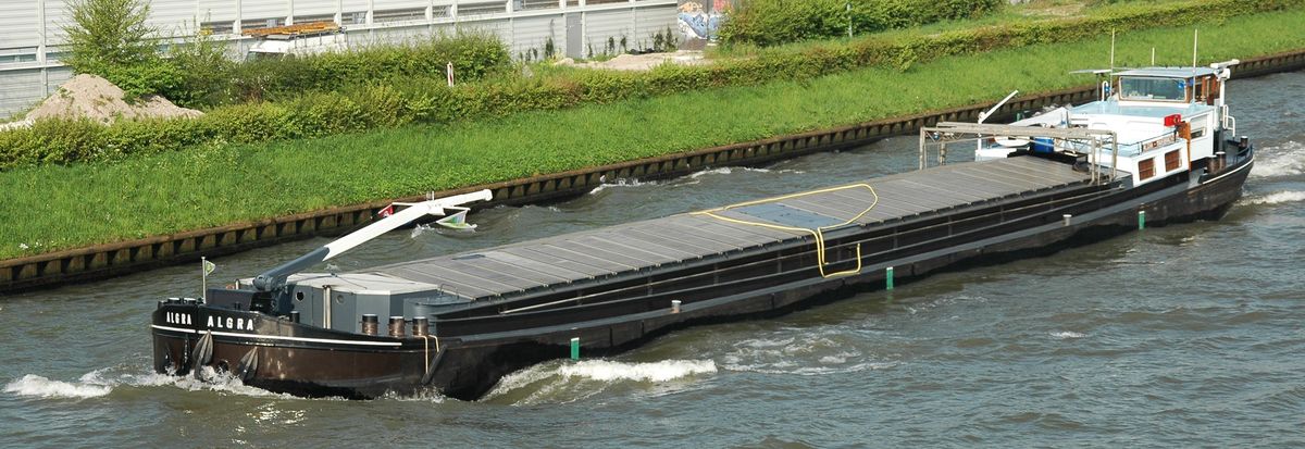 De Kempenaar 'Aurora' op het Prinses Margrietkanaal nabij Oude Schouw. Het schip werd in 1929 bijde Gebroeders Boot te Delft gebouwd en meet 50,16 x 6,6 x 2,28 meter bij een laadvermogen van ca. 540 ton.