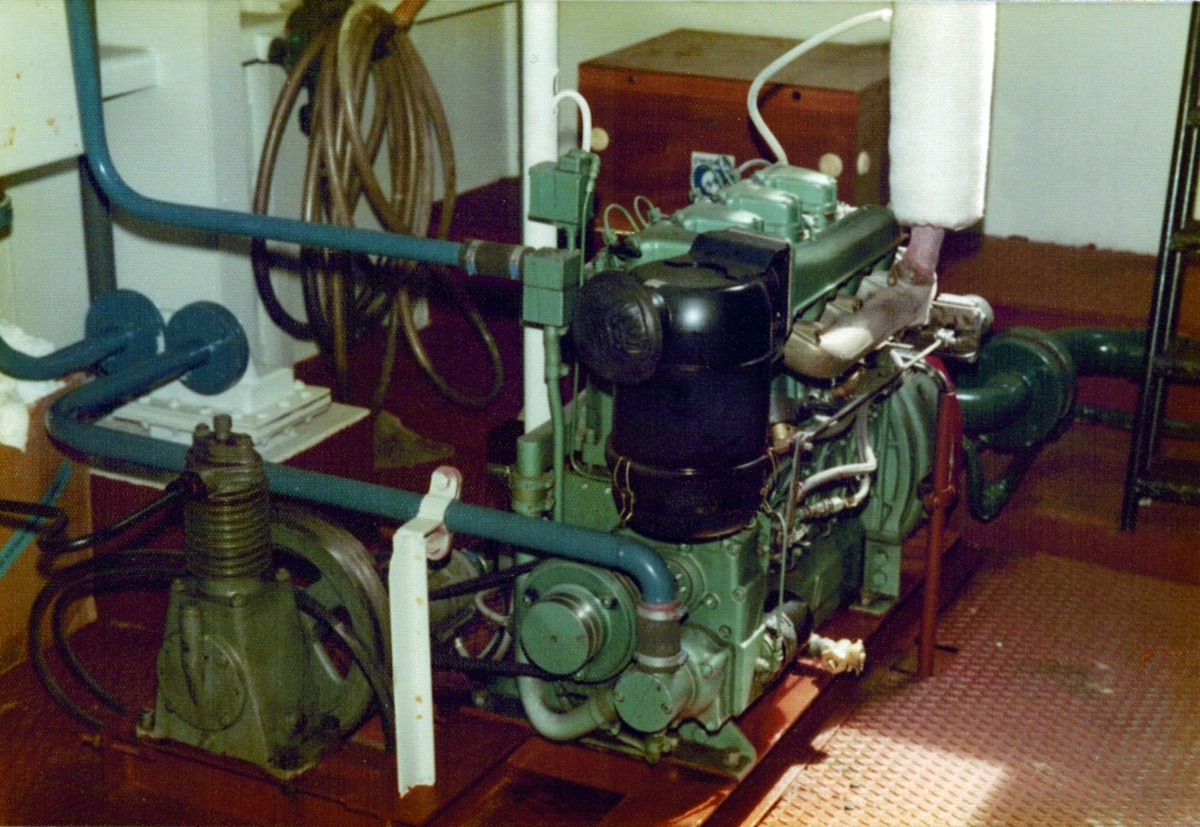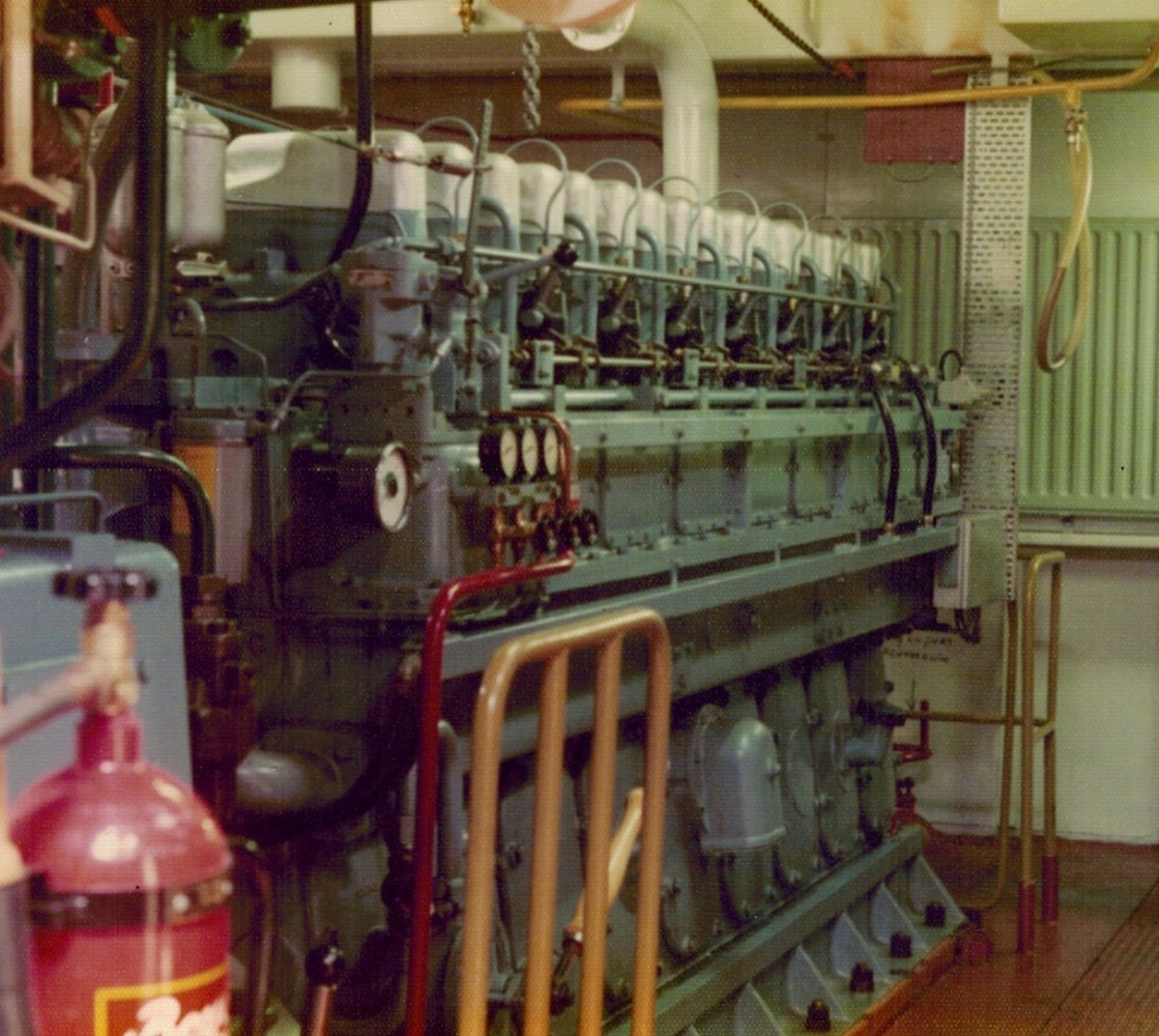 De hoofdmotor naar achter toe gezien. De 'Almere' had in verband met haar