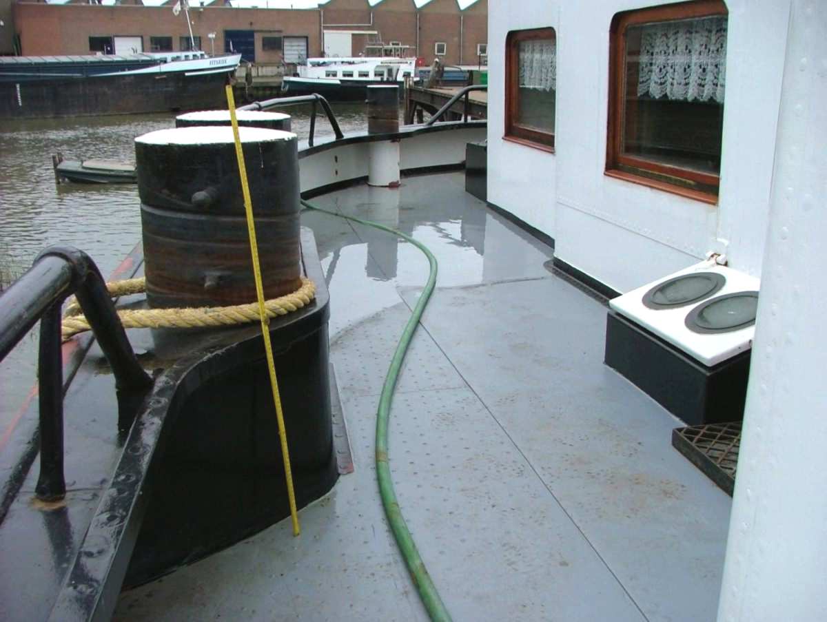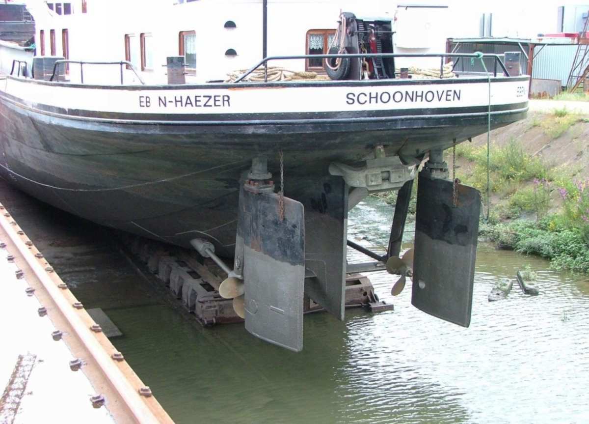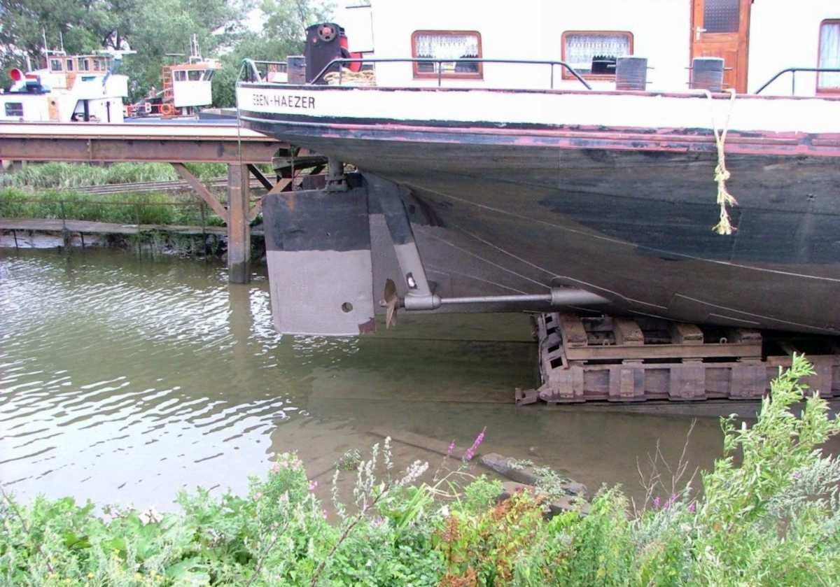 Bij laagwater kan men echter wel, voor een goed deel, onder het achterschip werken. (