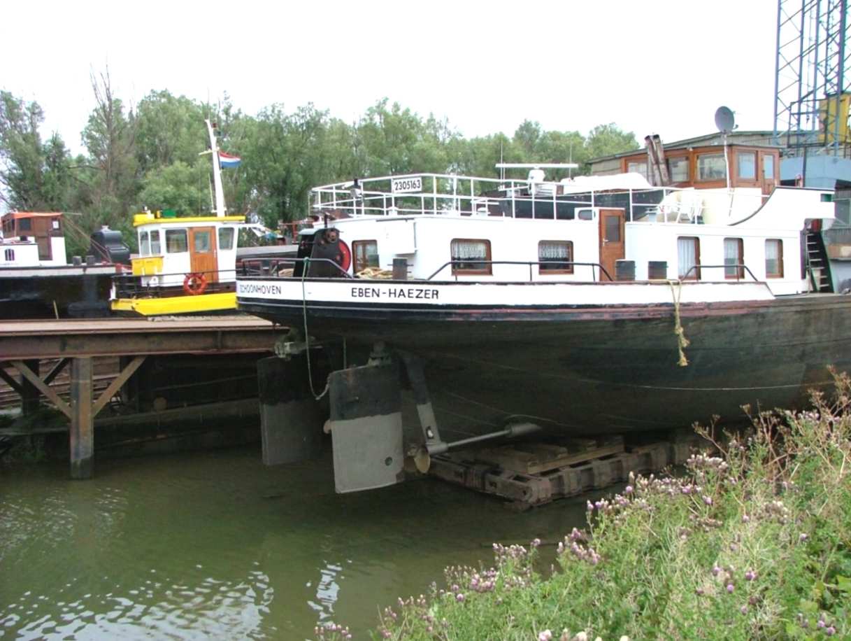 De 'Eben Haezer' op de helling bij Scheepswerf Grevenstein te Krimpen aan de IJssel. Het schip behoort tot het scheepstype