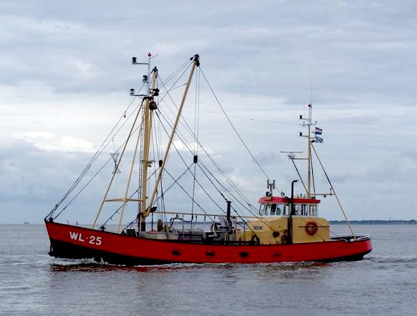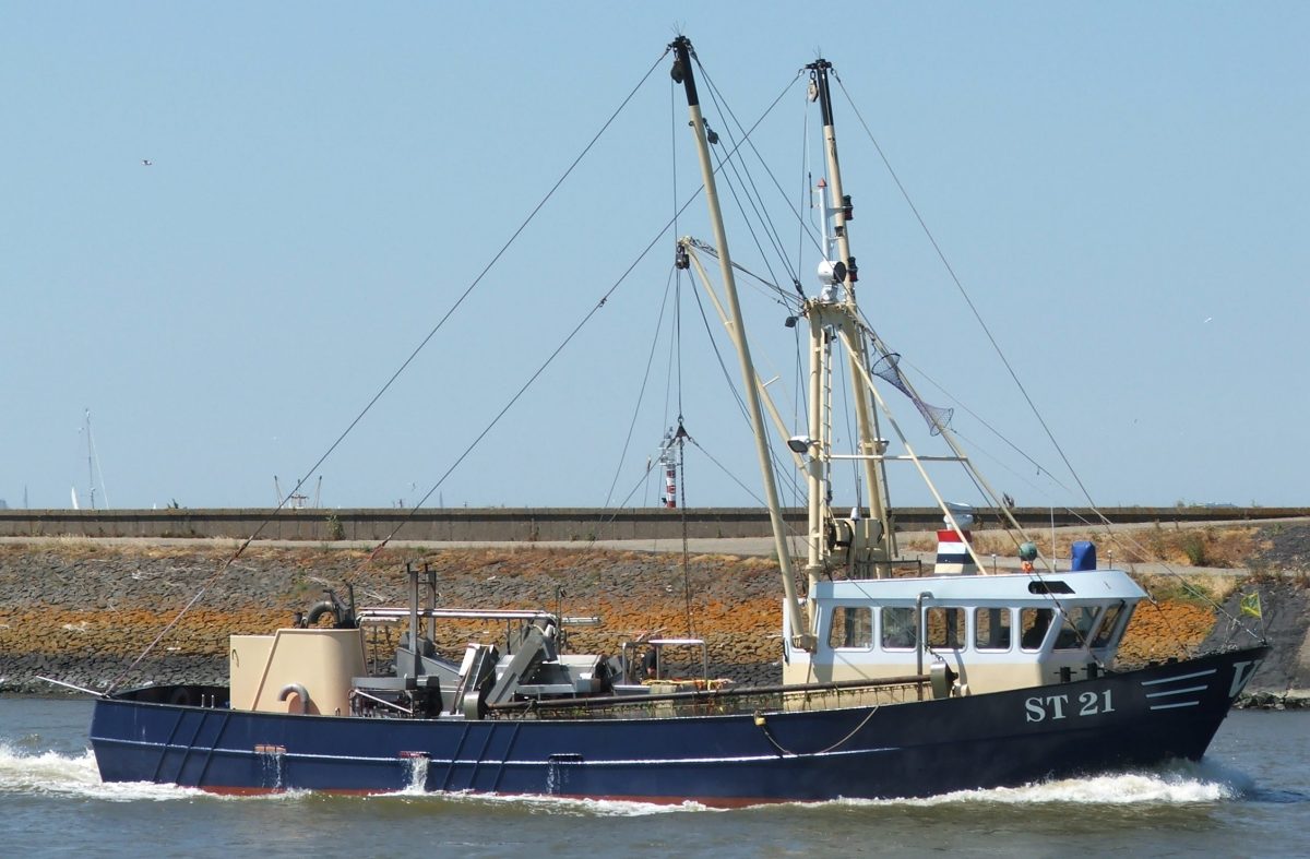 garnalenkotter, hekkotter, TS 1, werd in 1988 bij scheepswerf Harlingen