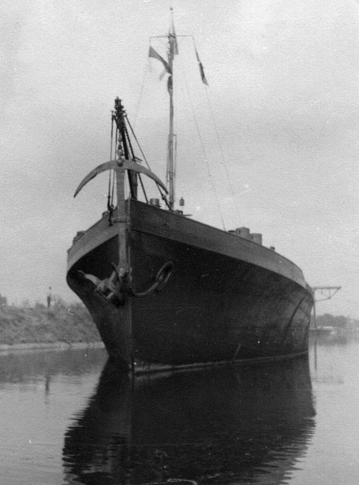 voorschip van de 'Grebbeland' op een foto uit 1948. Dit soort voorschepen zag men bij de vooroorlogse motorschepen vrij vaak.