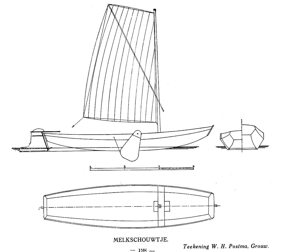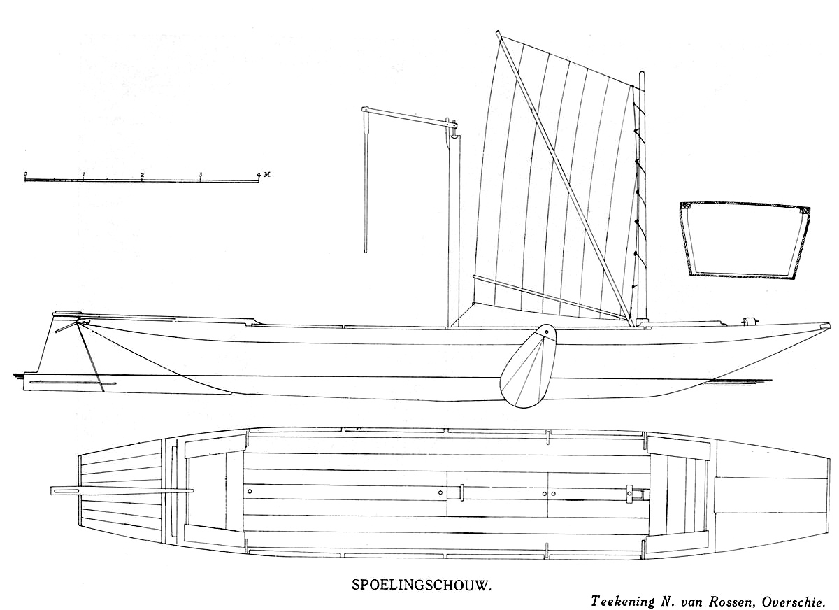 praamschouw. G.J. Schutten hanteert echter weer andere benamingen. De kleine zijn dan de melk-, jagers-, en bunschouw. Dan volgt de boerenschouw van 5, 6 of ruim 7 meter lengte en tenslotte de 'aak' van 7,5 bij 1,5 meter.