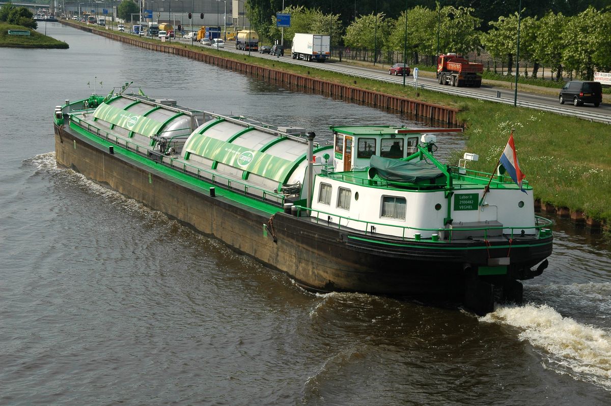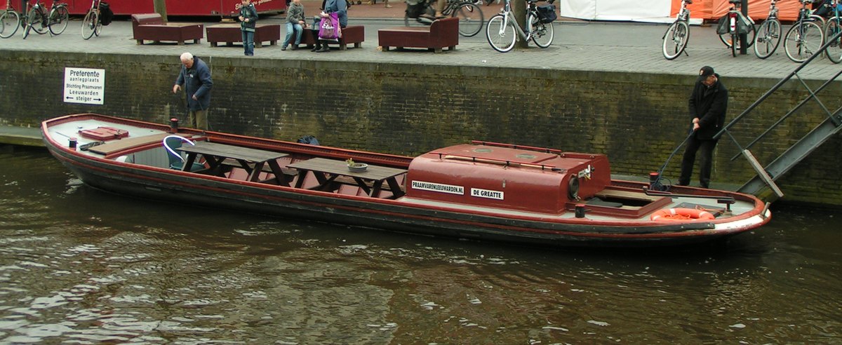 rondvaartboot in Leeuwarden. Eerst was het vaartuig voorzien van een 2 cil.