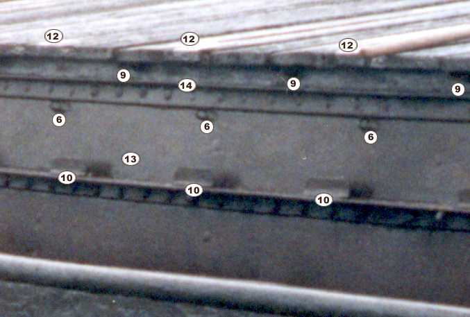 zegelbouten door de gaten (12) stak en dat deze tevens door gaten in de hoeklijn daaronder staken. In dat geval is die hoeklijn dus een