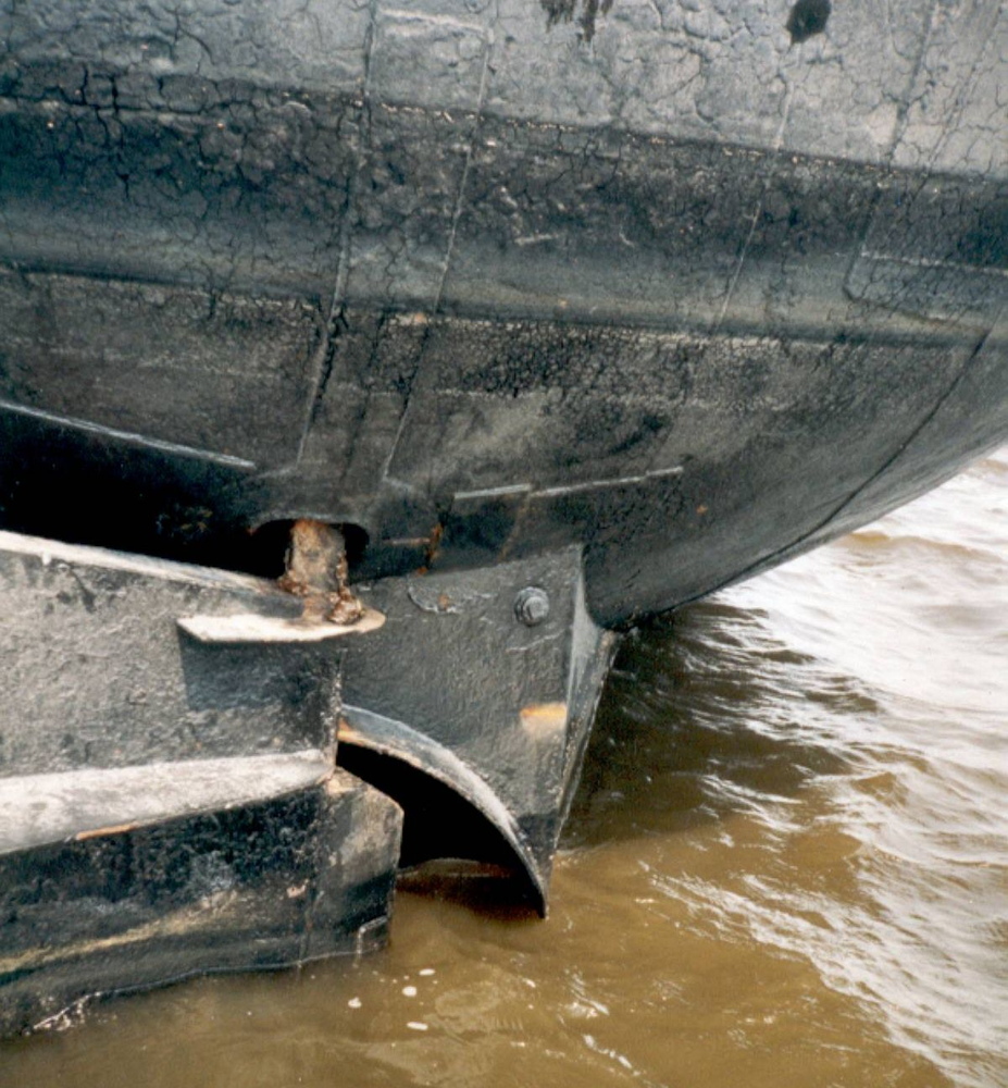 schroeftunnel van de 'Fado'. Zoals te zien is, ligt de tunnel gedeeltelijk boven water. Wil men