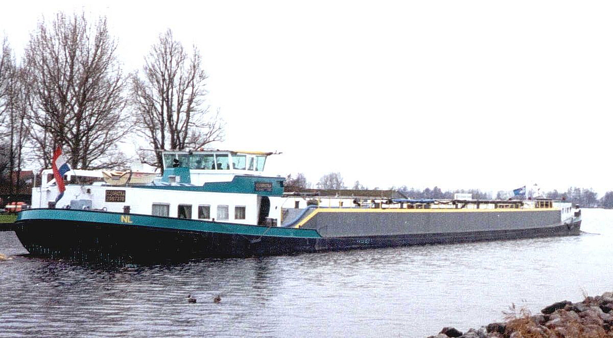 Motortankschip 'Alberdina' werd in 1993 in Polen gebouwd, bij Olthof te Capelle a/d IJssel