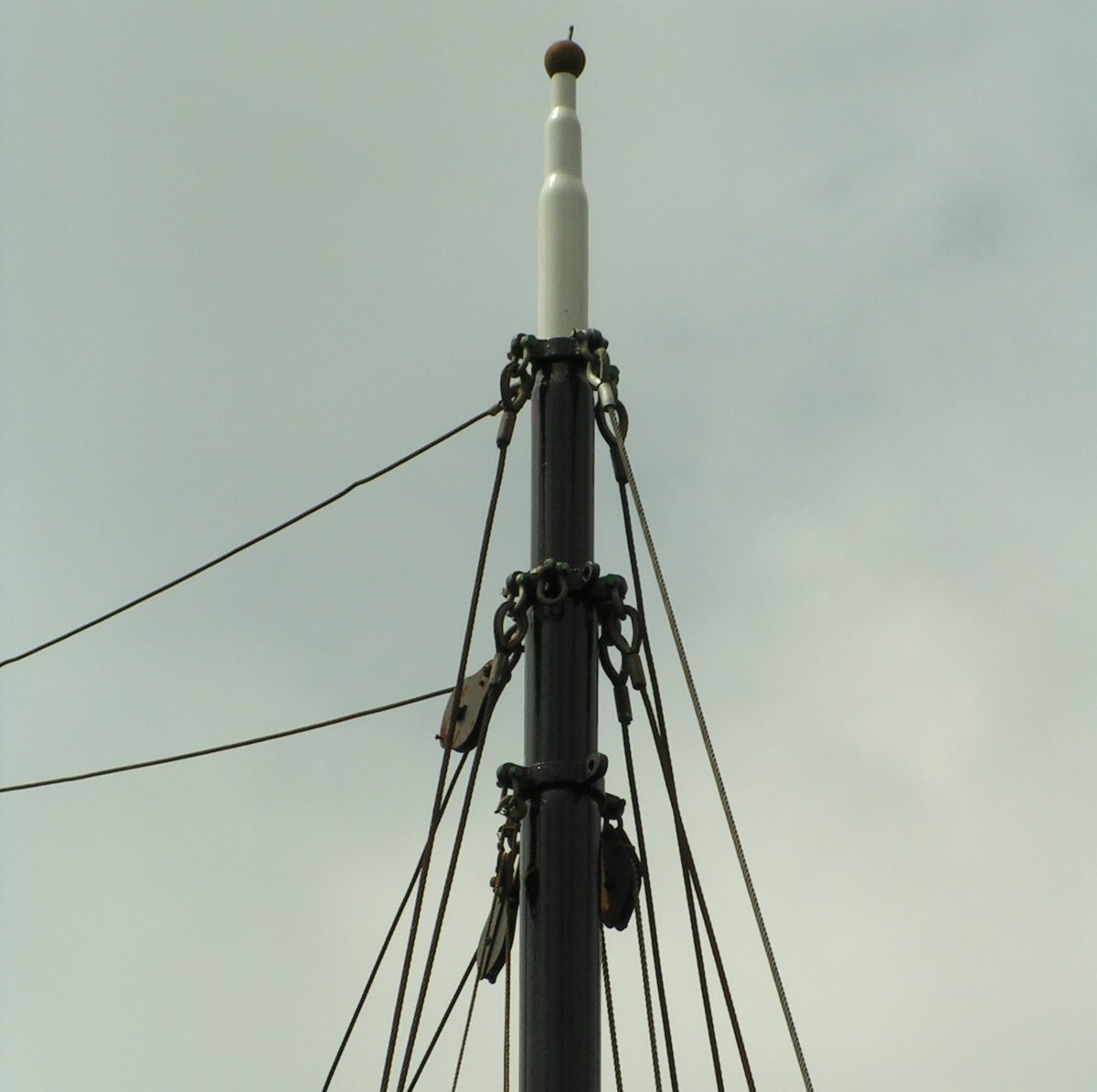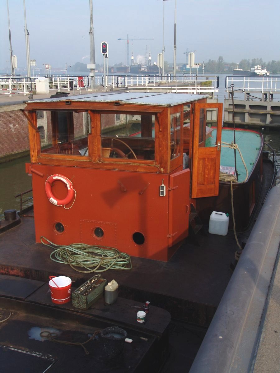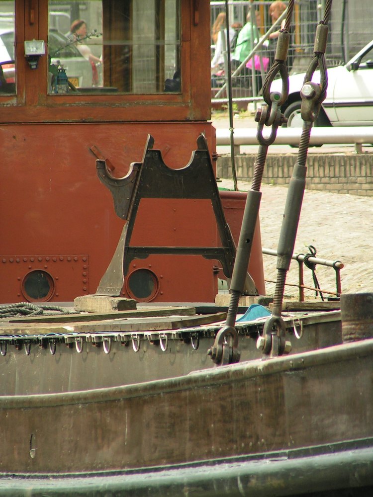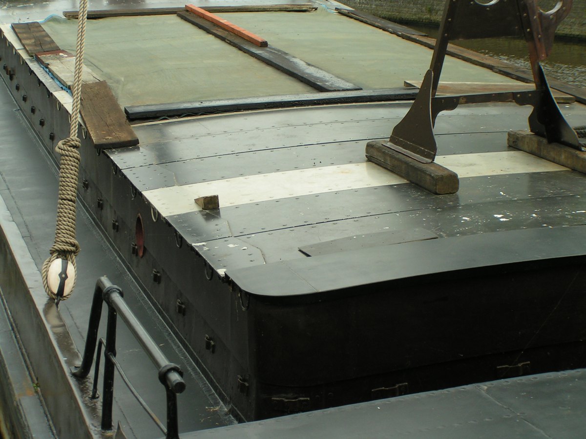 spalkbeugels die gedienstig konden zijn wanneer men de luiken of eventuele lading daarop, spatwaterdicht wilde afdekken. Verder op de kap ligt een