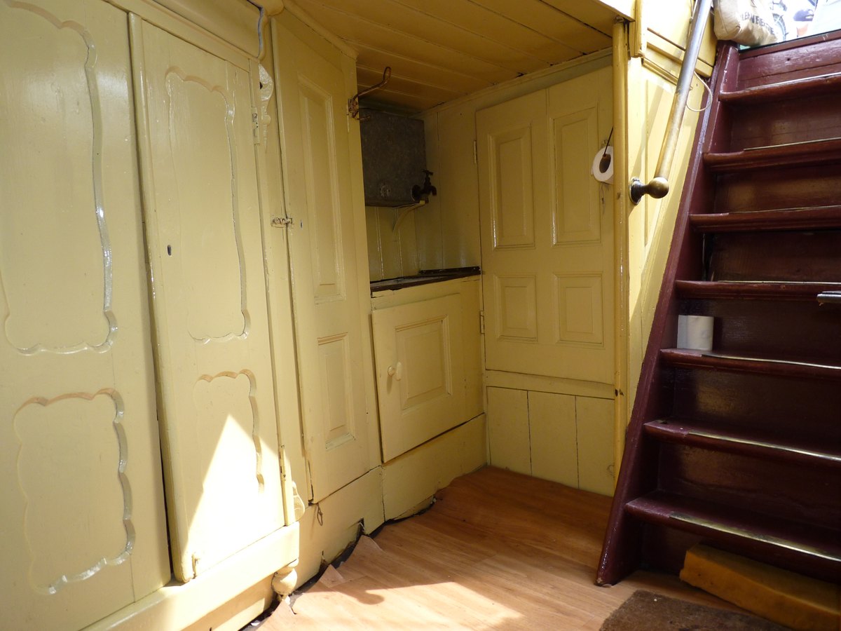 door de vloer omhoog. Een zeer gebruikelijke constructie bij schepen uit die tijd.