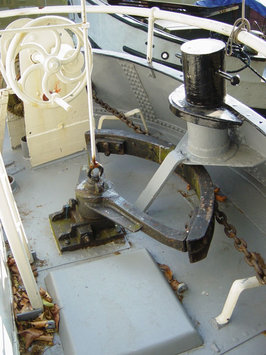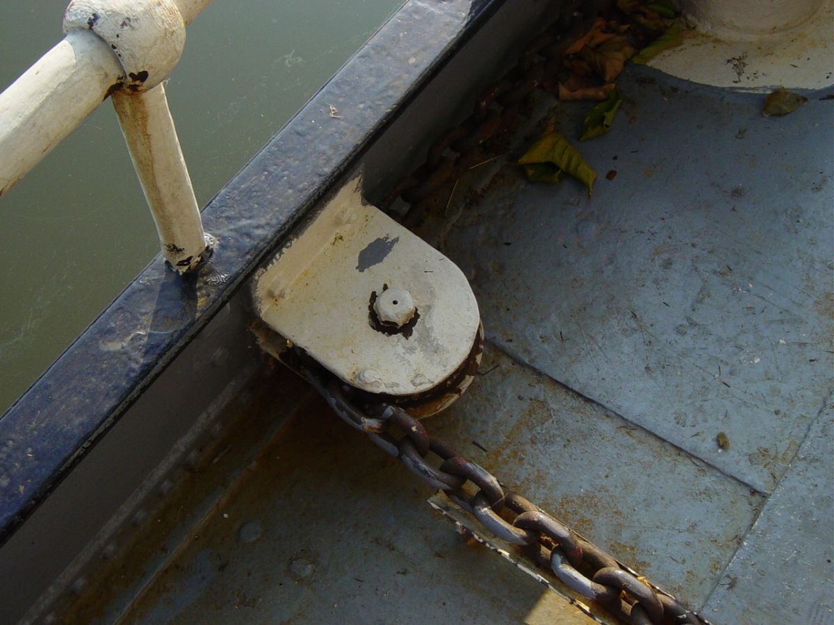 naar achter geleidt. Al is het hier tegen het boeisel gemonteerd, toch is dit een dekblok. (groter formaat)