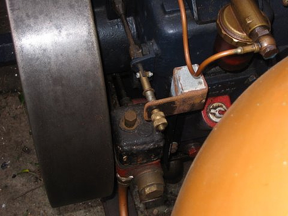 Carterzijde met, centraal in beeld, een, later aangebrachte, toerentalverstelling. Rechtsboven het brandstoffilter.