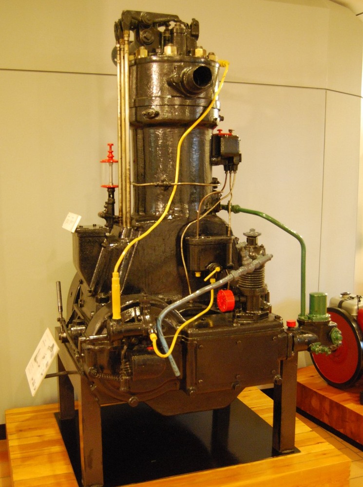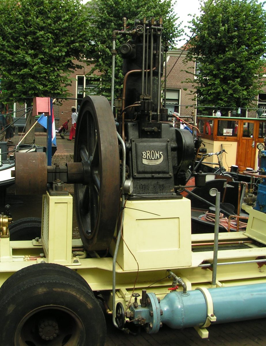 Een één-cilinder motor naar ontwerp van Brons vervaardigd