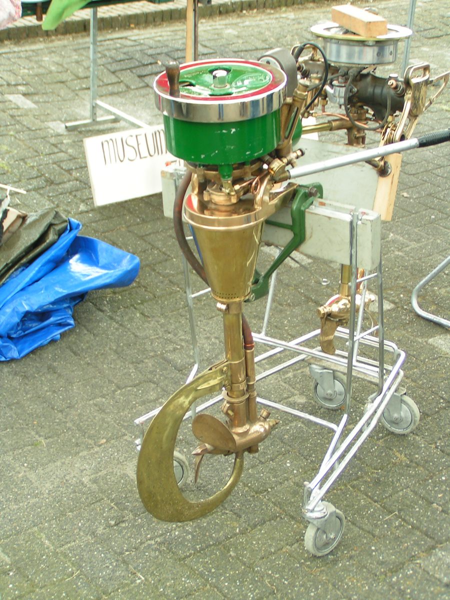 De schroefas is via een kruiskoppeling vast verbonden met de motor en kan, volgens beschrijving, op diepgang versteld worden. Er is een omkeerbare schroef gemonteerd waarvoor de bedienings handel vlak boven de uitgaande as zit.