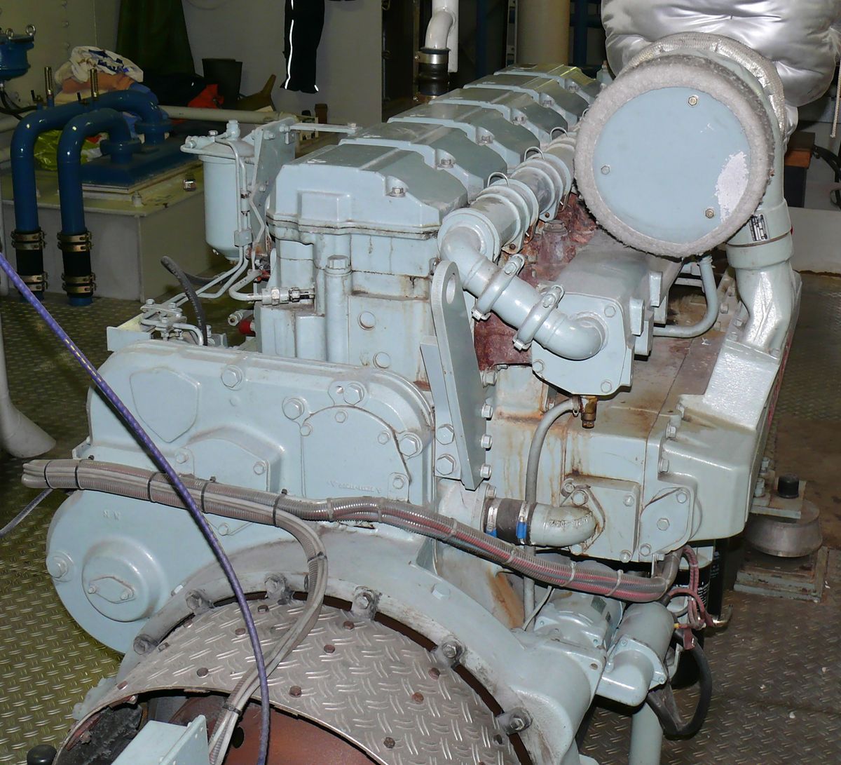 Een Mitsubishi S6R-MPTA. Deze motor levert 550pk bij circa 1500 tpm.