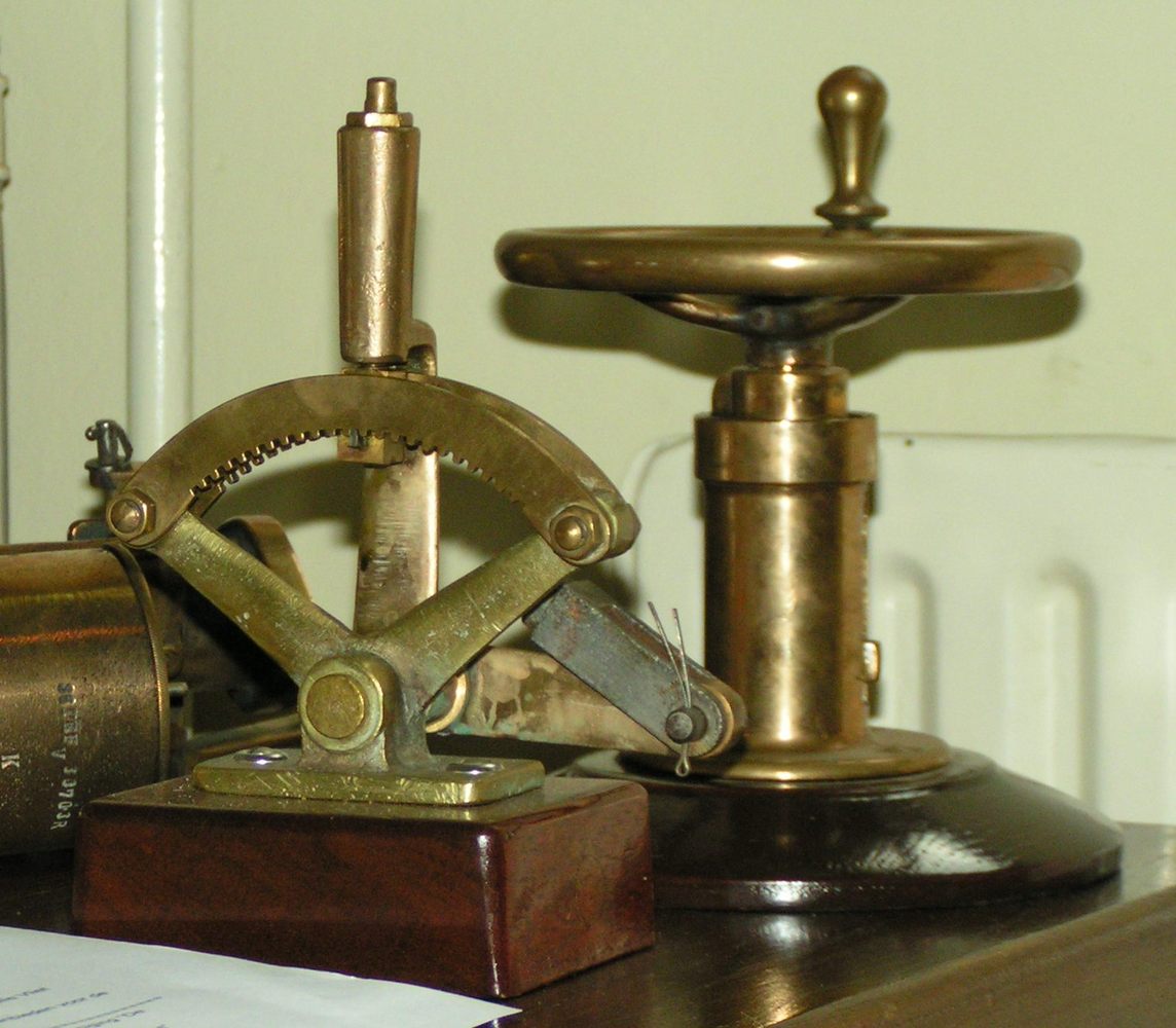 Op de voorgrond dat wat men ook een manette noemt; op de achtergrond een 'gasspindel' zoals die bij veel oude langzaamlopers toegepast werd.