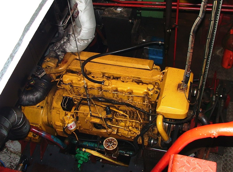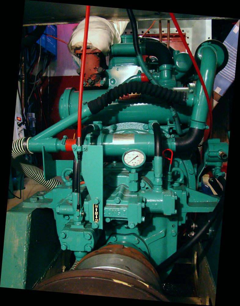De Daewoo scheepsdiesel aan boord van de steilsteven 'Variatie'.
