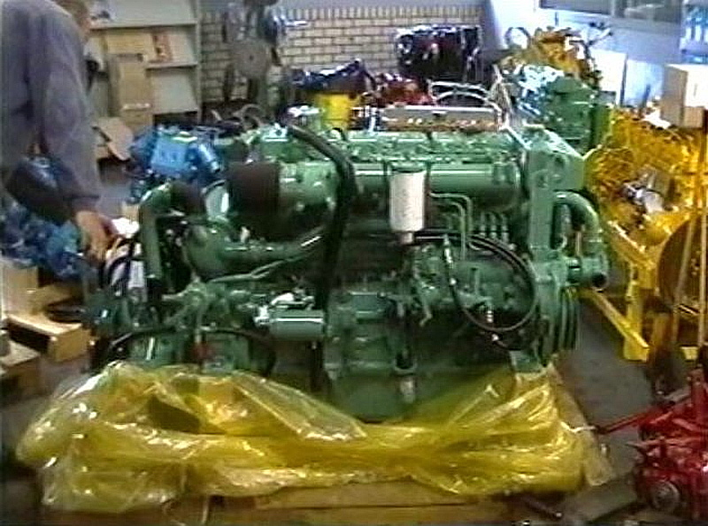 Een John Deere motor aan boord van