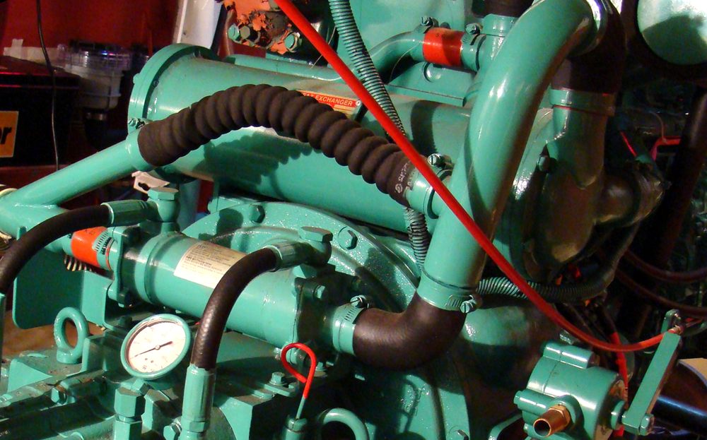 Het dikke cilindervormige deel hier in de foto is de warmtewisselaar voor de motor (de motorkoeler), de dunne is de