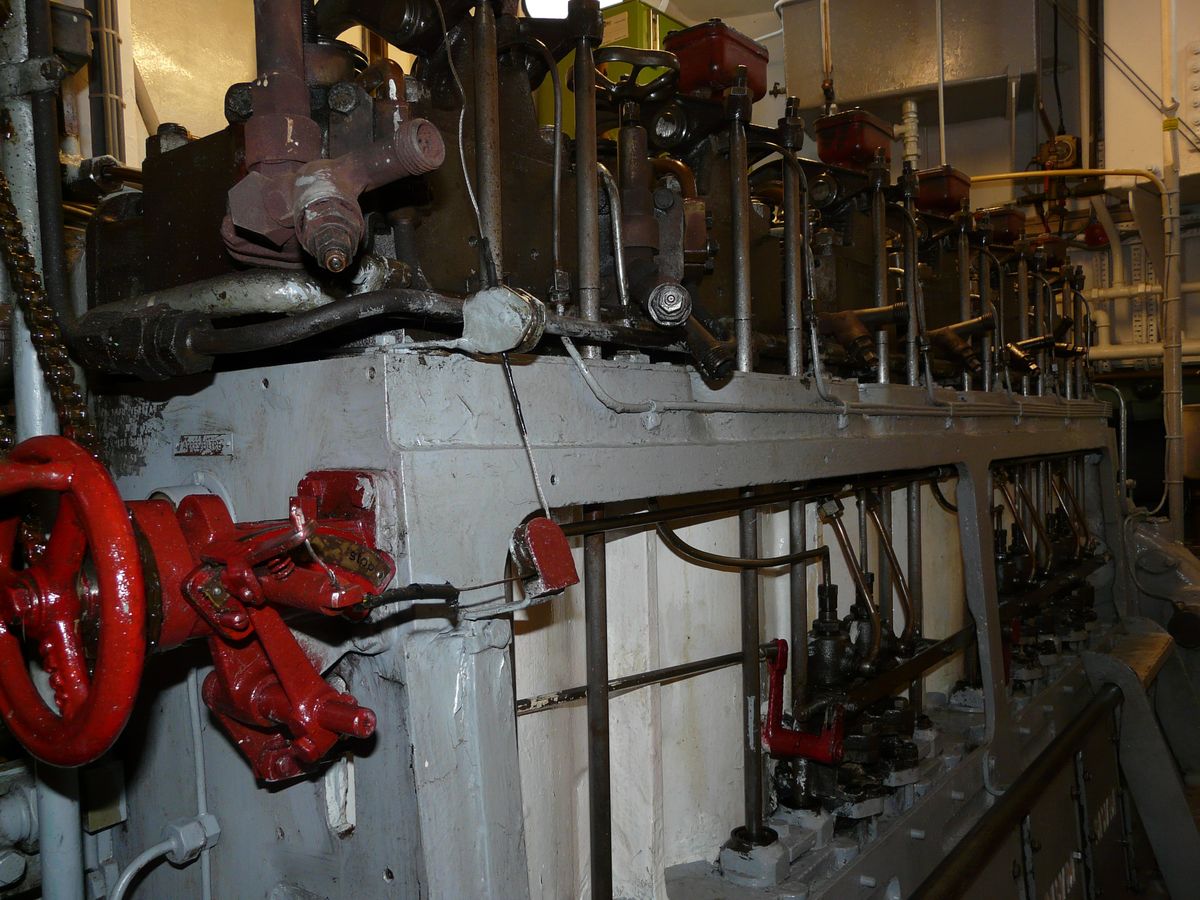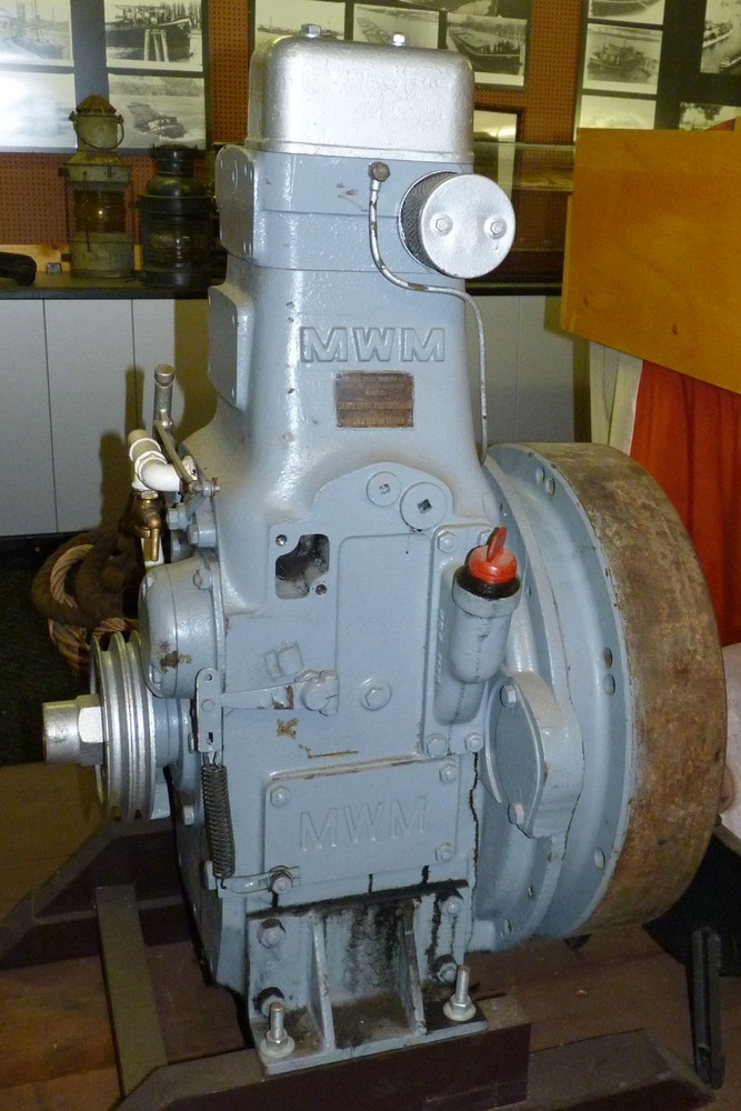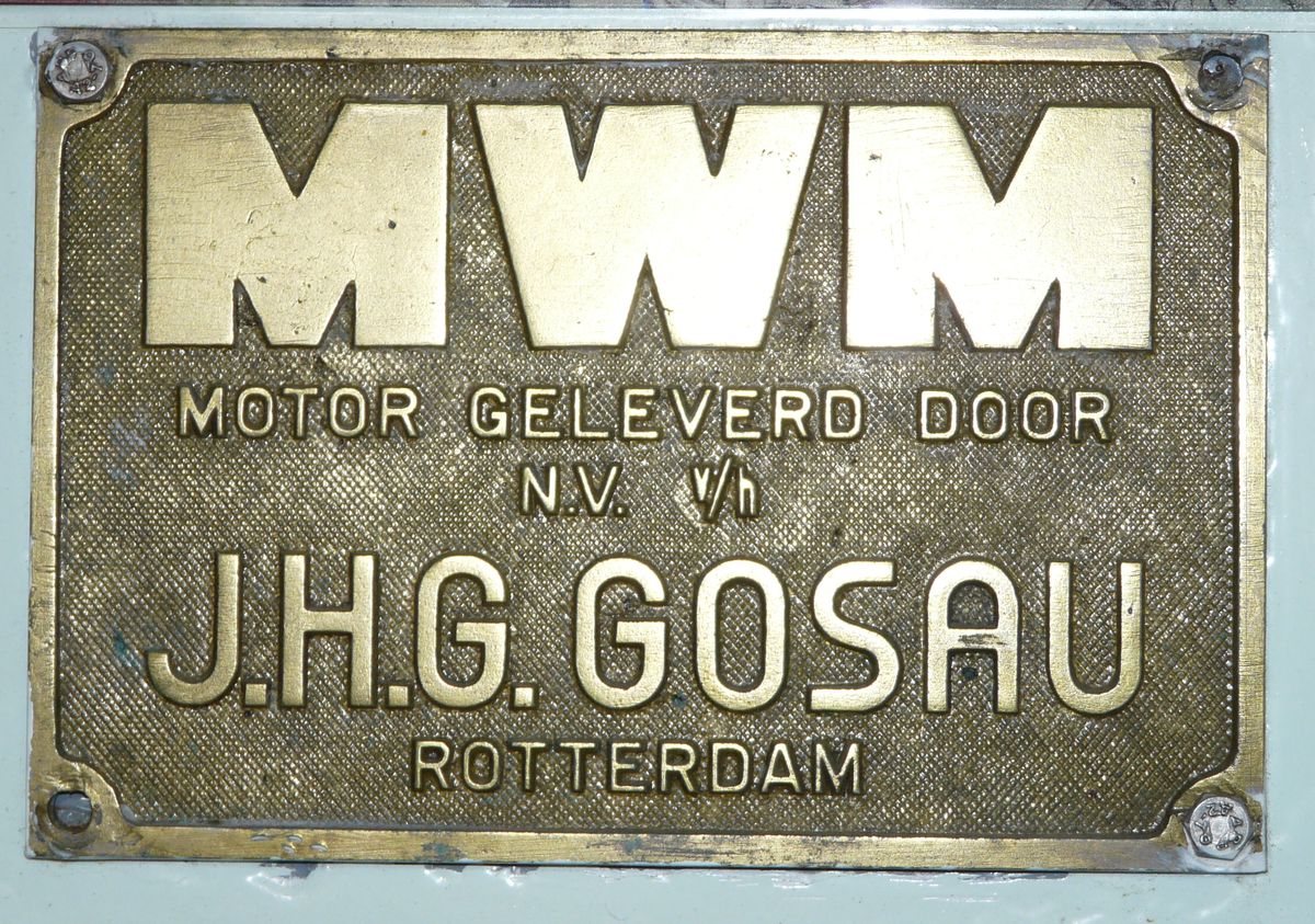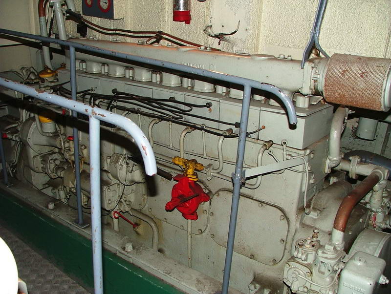 Een 8 cilinder MWM RHS 418 A levert 180 pk bij 1500 tpm. Maximum vermogen 220 pk (bij 1800 tpm?). De motor wordt met lucht gestard.