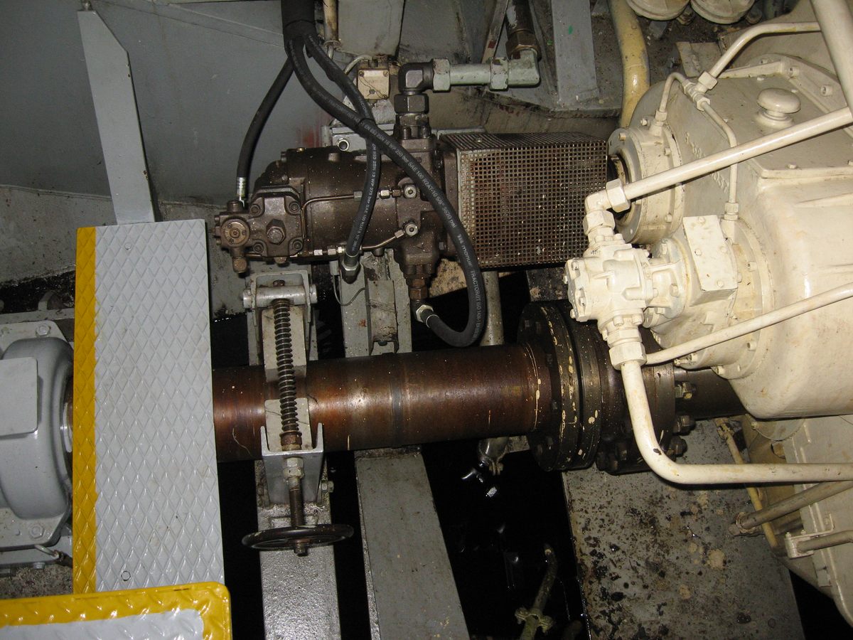 De hoofdmotor wordt, behalve voor de voortstuwing ook gebruikt voor het pompen. Vandaar waarschijnlijk dat men het meedraaien van de schroefas